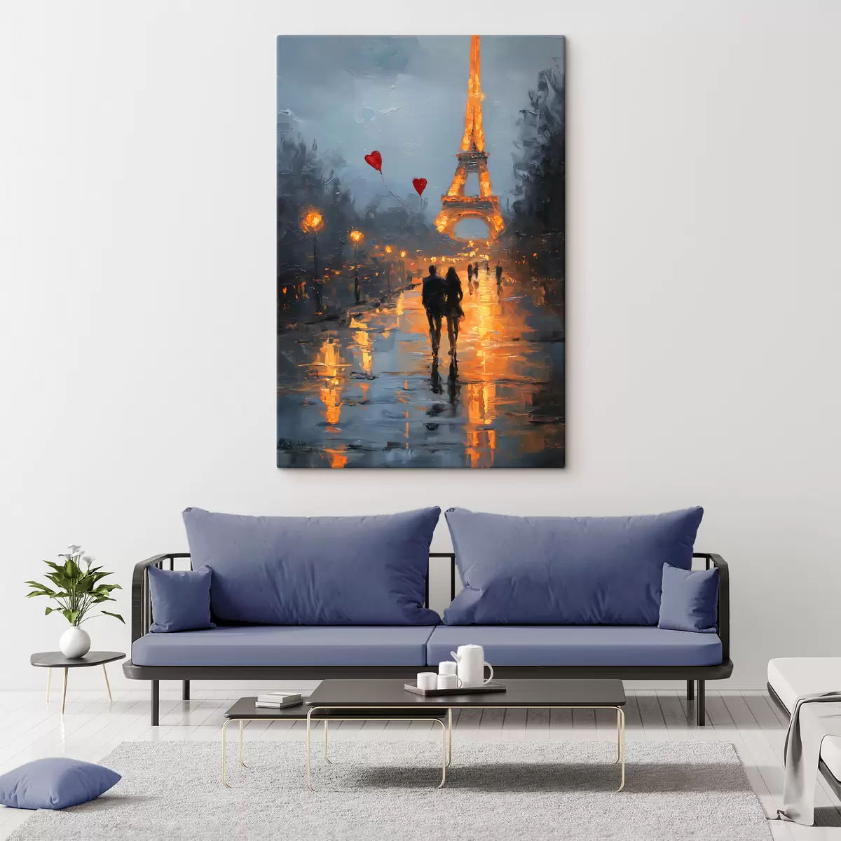 Tableau Promenade romantique à Paris, style peinture à l'huile s47952