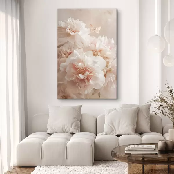 Tableau pivoines roses luxuriantes avec un papillon Nr s47954