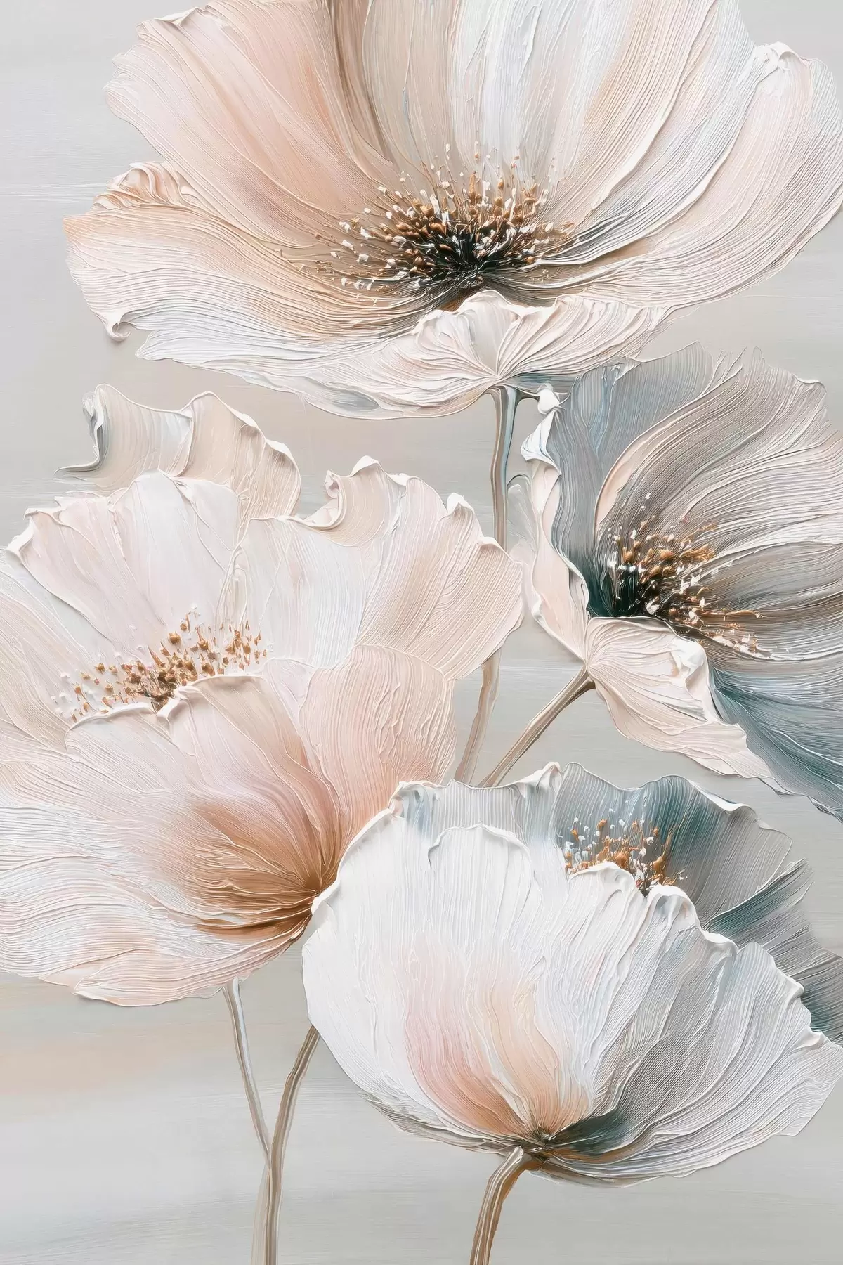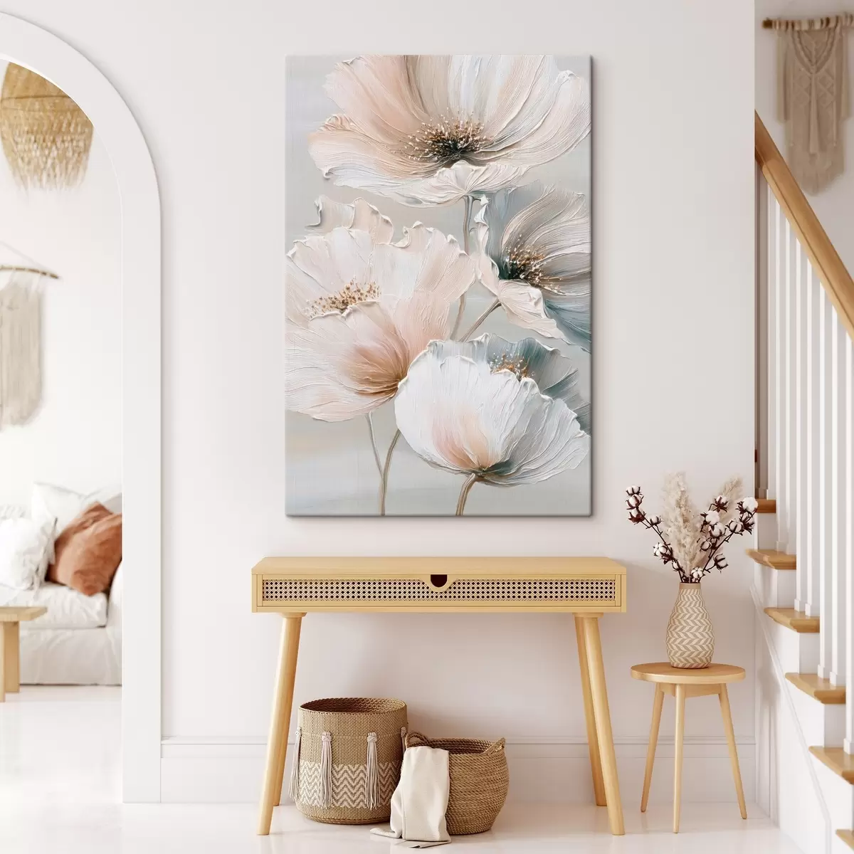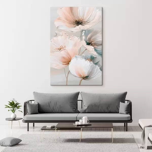 Tableau Composition florale avec des coups de pinceau texturés dans une palette beige-rose s47961