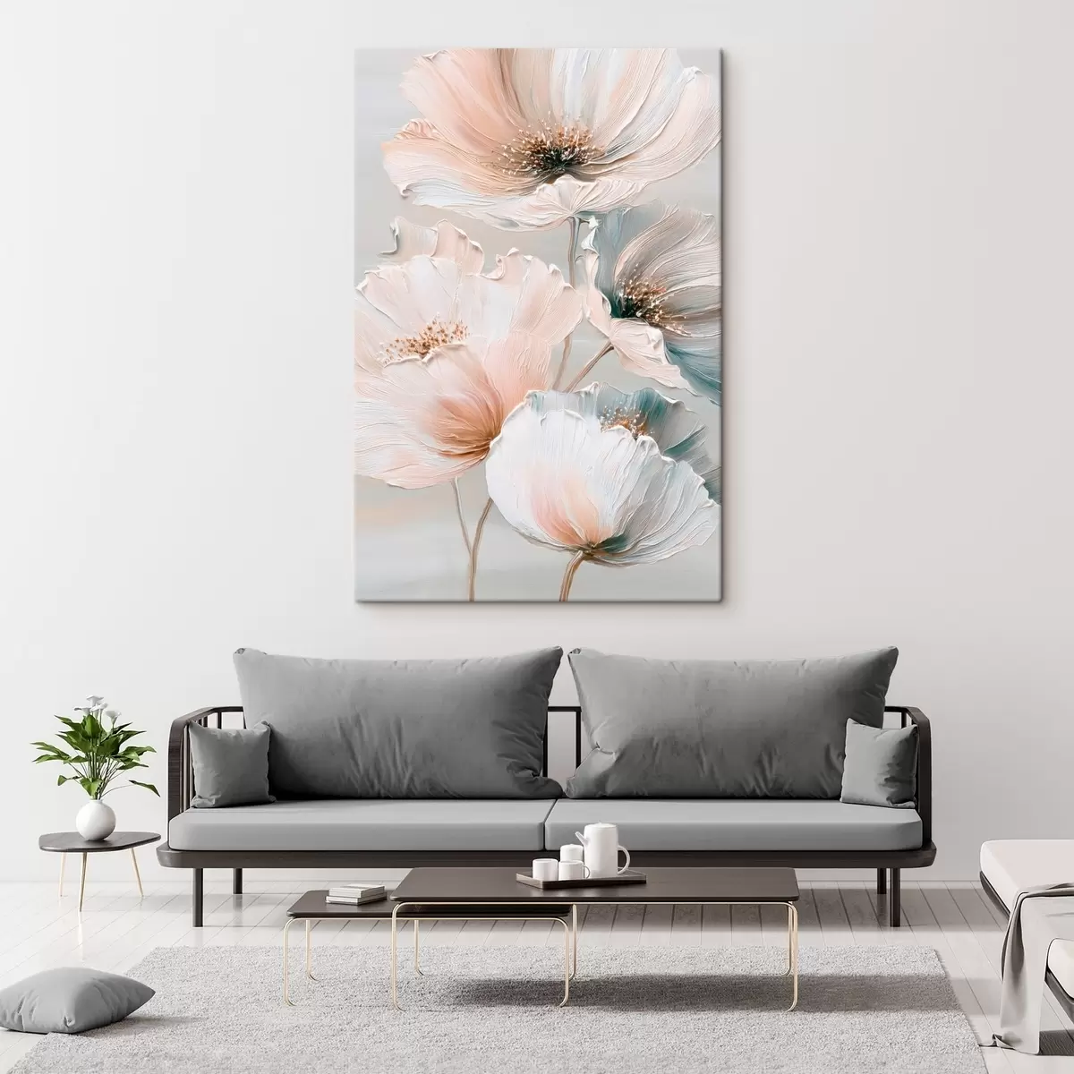 Tableau Composition florale avec des coups de pinceau texturés dans une palette beige-rose Nr s47961