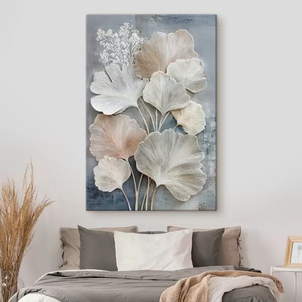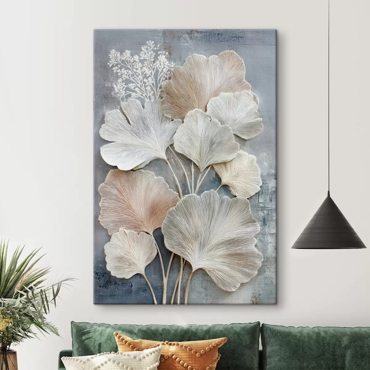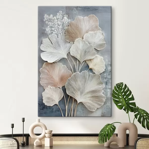 Tableau Composition florale abstraite dans une palette beige-bleu s47963
