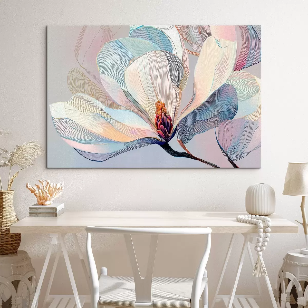 Tableau Magnolia délicat dans des tons bleu-rose s47967