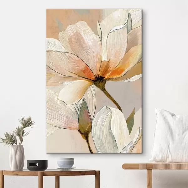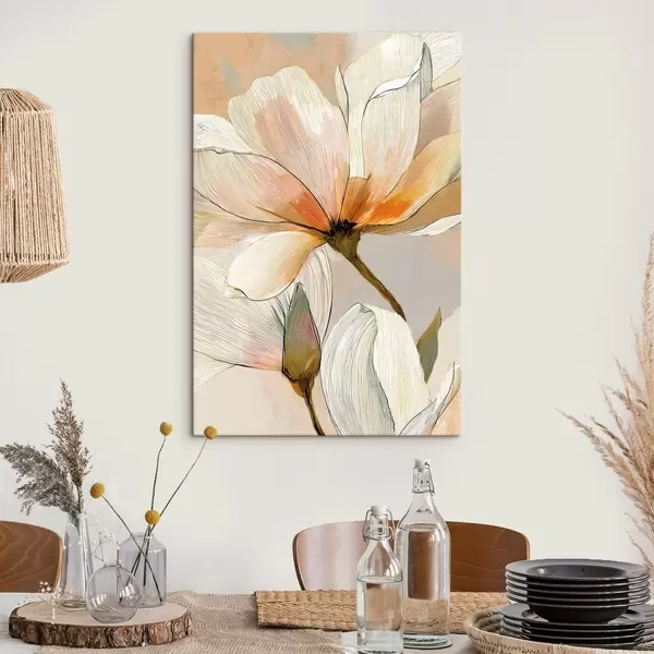 Tableau Composition florale dans les tons pêche et bleu Nr s47969