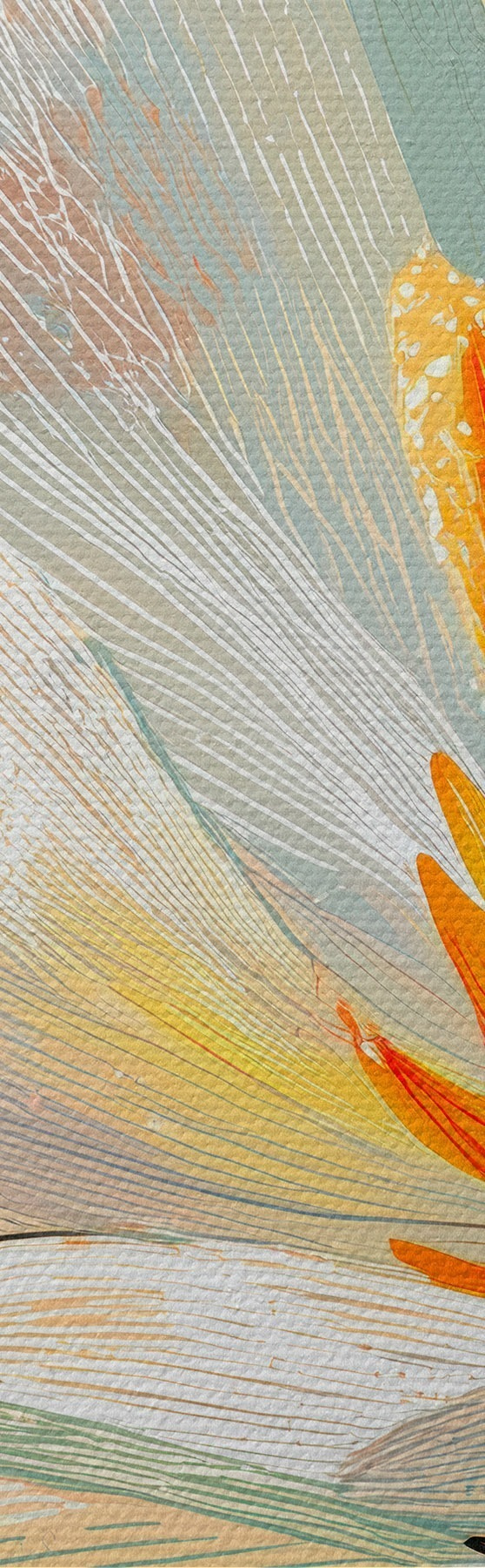Tableau Magnolias abstraits dans une palette pastel mettant l'accent sur les graphismes linéaires s47970