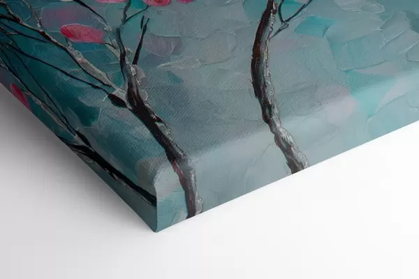 Tableau Branche avec des fleurs roses sur fond bleu dans un style peinture à l'huile s47987