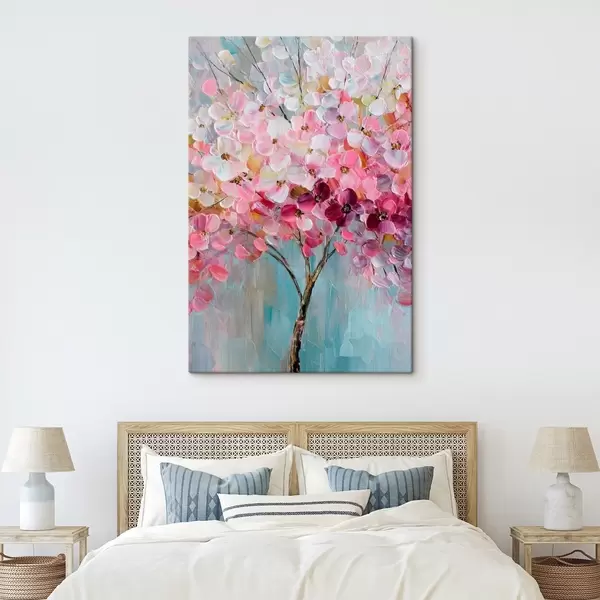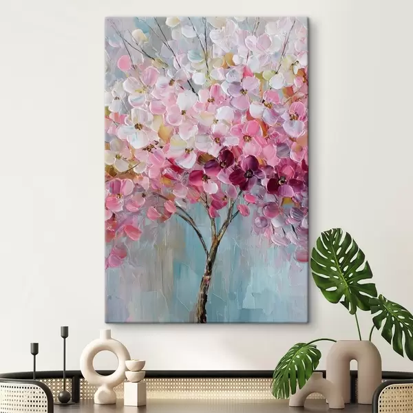 Tableau De délicates fleurs roses se détachent sur un ciel clair. Nr s47988