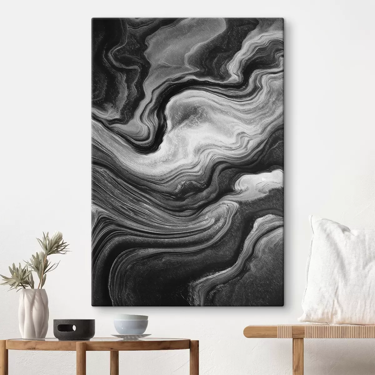 Trois types de matériaux peuvent être commandés : Economic Canvas - matériau dense et durable pour l'impression numérique, identique à la toile de peintre, surface imperméable, reproduction réaliste des détails, matériau à grain moyen. Premium Canvas - la texture ressemble à celle d'une toile de peintre (petits fils entrelacés). Reproduction douce et détaillée de l'image sur une surface mate. Eco-Premium - tissu 100 % coton de haute qualité. Grâce aux fibres naturelles de coton, le matériau est durable et résistant à l'usure. Excellente reproduction des couleurs et des détails.