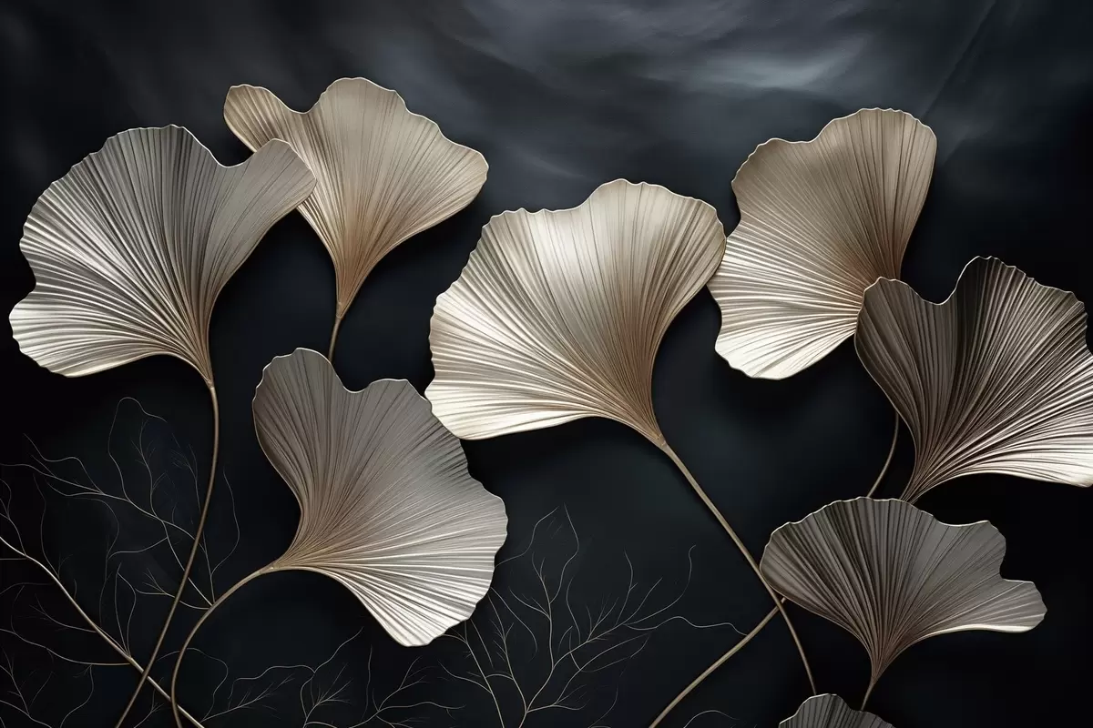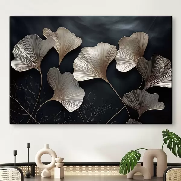 Tableau Feuilles de ginkgo sur fond sombre Nr s48008