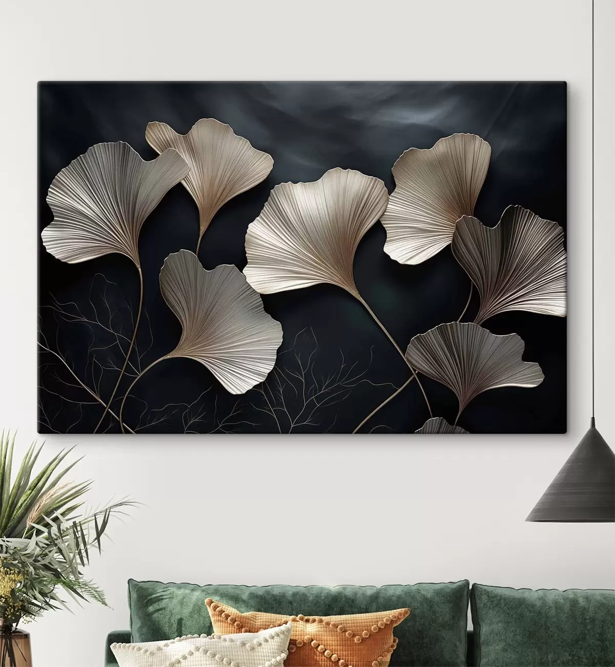 Tableau Feuilles de ginkgo sur fond sombre s48008