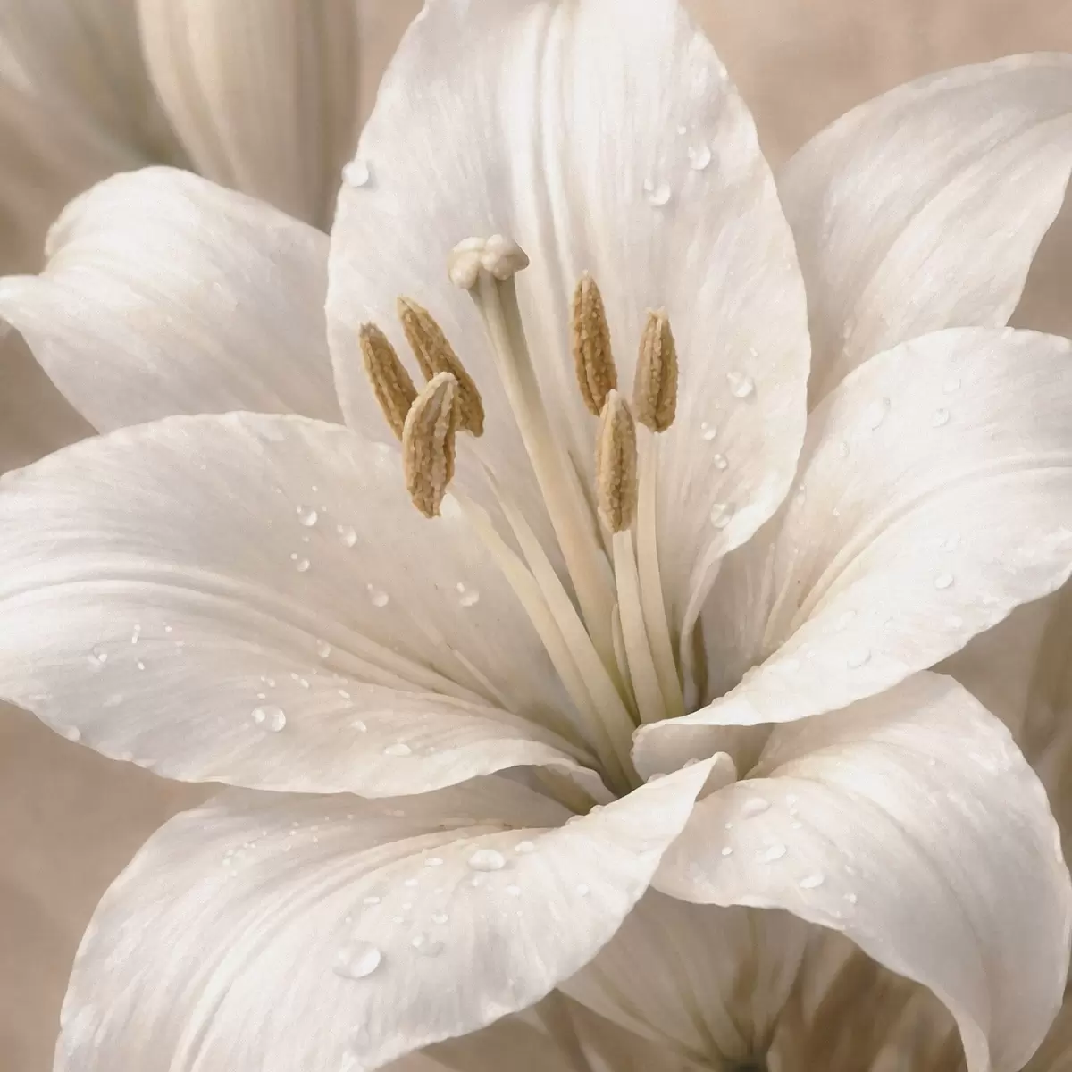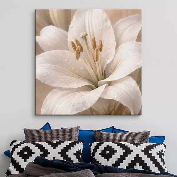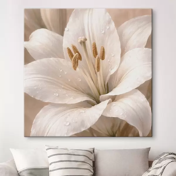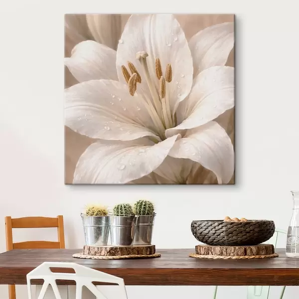 Tableau Gros plan sur une fleur blanche avec des gouttelettes d'eau Nr s48028