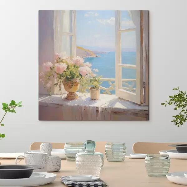 Tableau Un bouquet dans un vase près de la fenêtre s48053