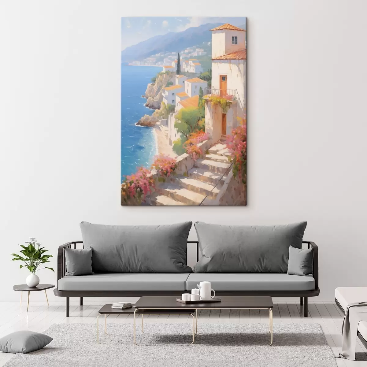 Tableau village méditerranéen impressionniste à flanc de falaise s48060
