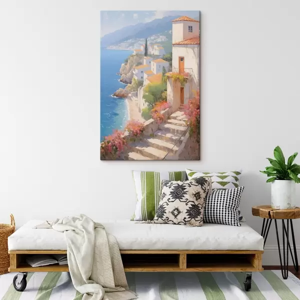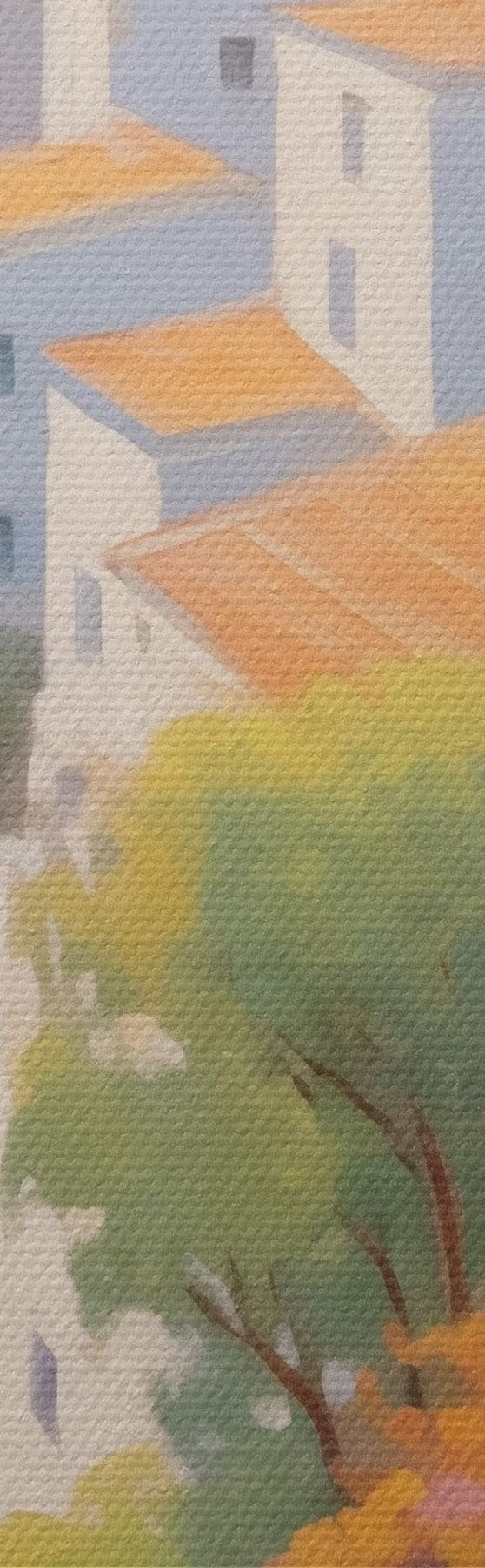 Tableau village méditerranéen impressionniste à flanc de falaise Nr s48060