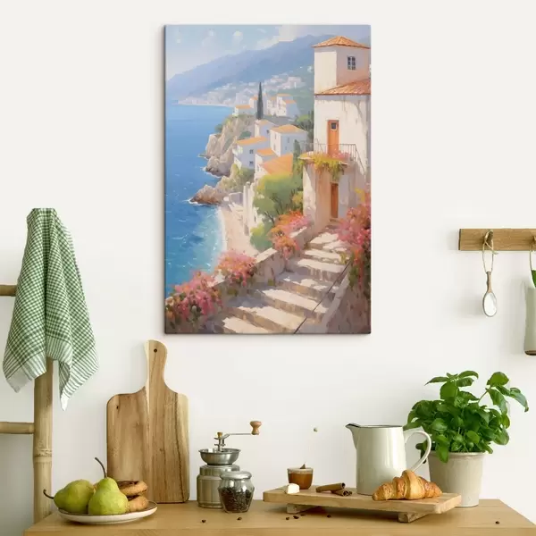 Tableau village méditerranéen impressionniste à flanc de falaise Nr s48060