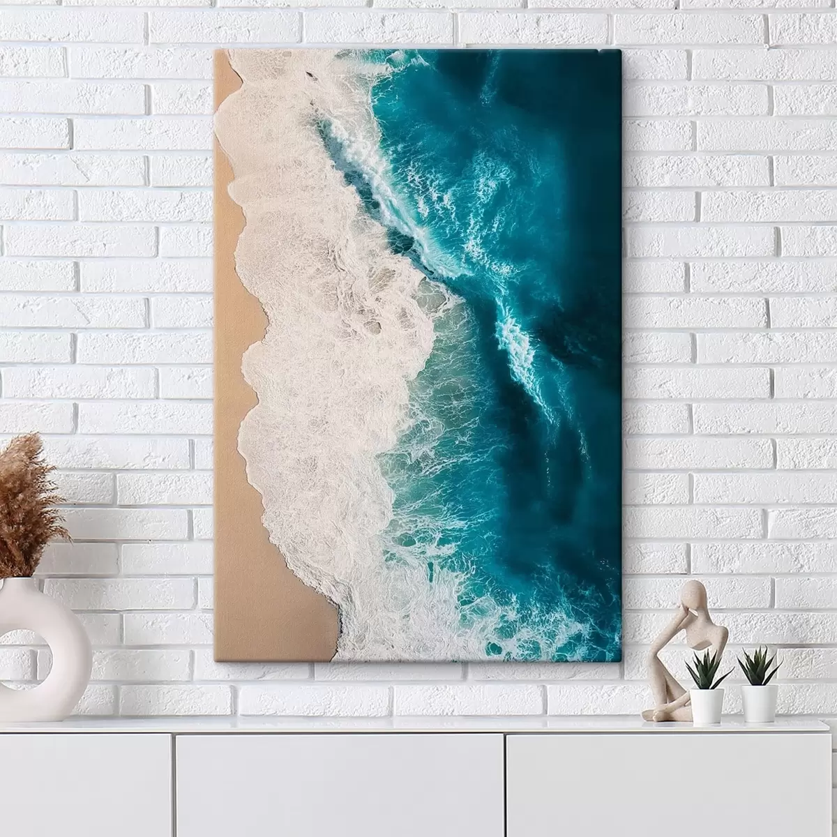 Tableau vue aérienne des vagues de l'océan venant se briser sur une plage de sable Nr s48062