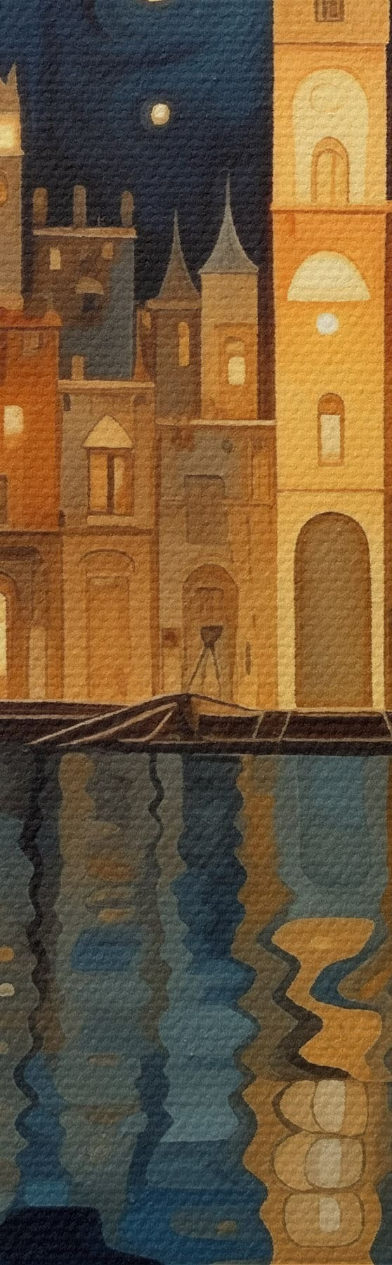 Tableau ville nocturne fantaisiste au bord de l'eau s48063