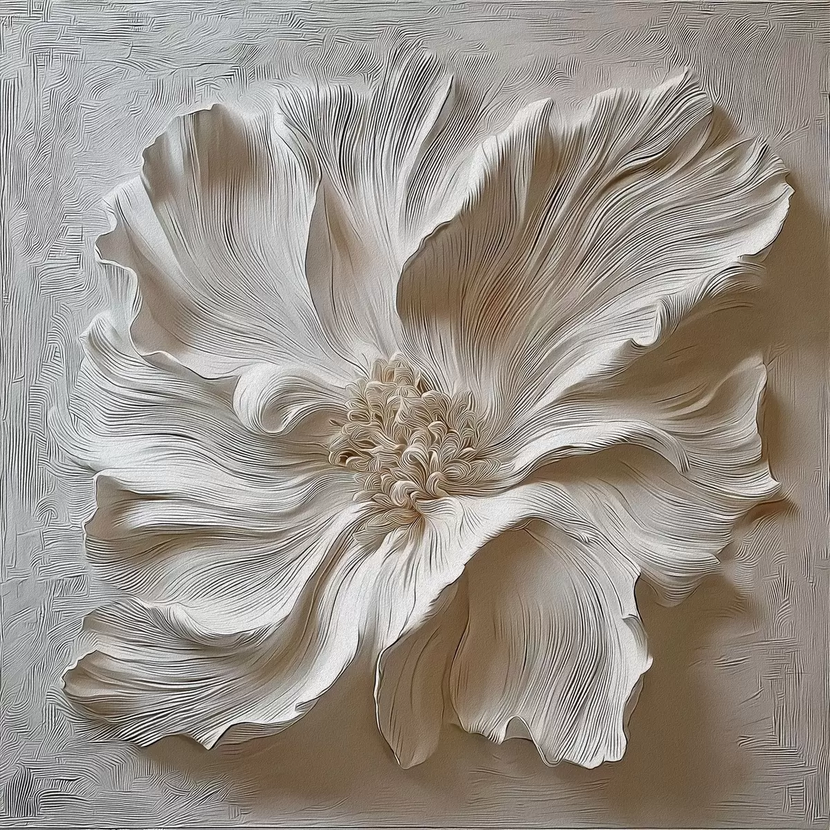 Tableau sculpture florale en relief en plâtre blanc Nr s48065