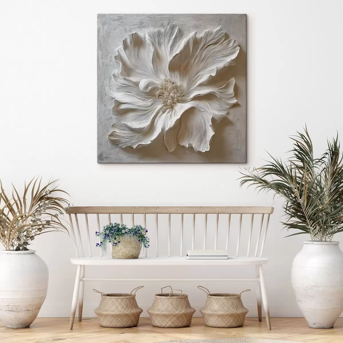Tableau sculpture florale en relief en plâtre blanc s48065