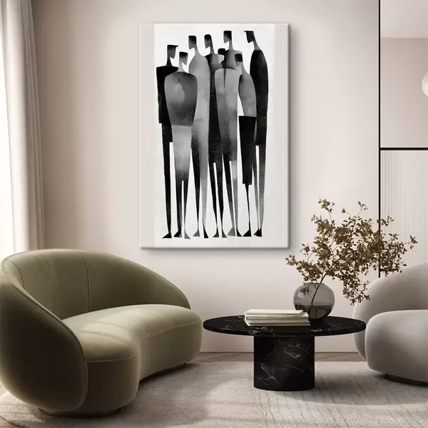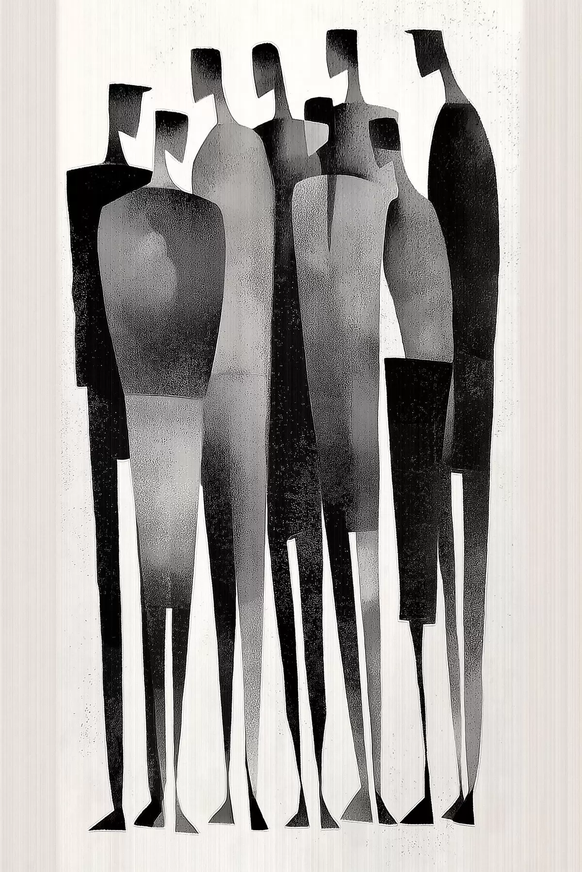 Tableau figures humaines minimalistes allongées, debout en rang Nr s48069