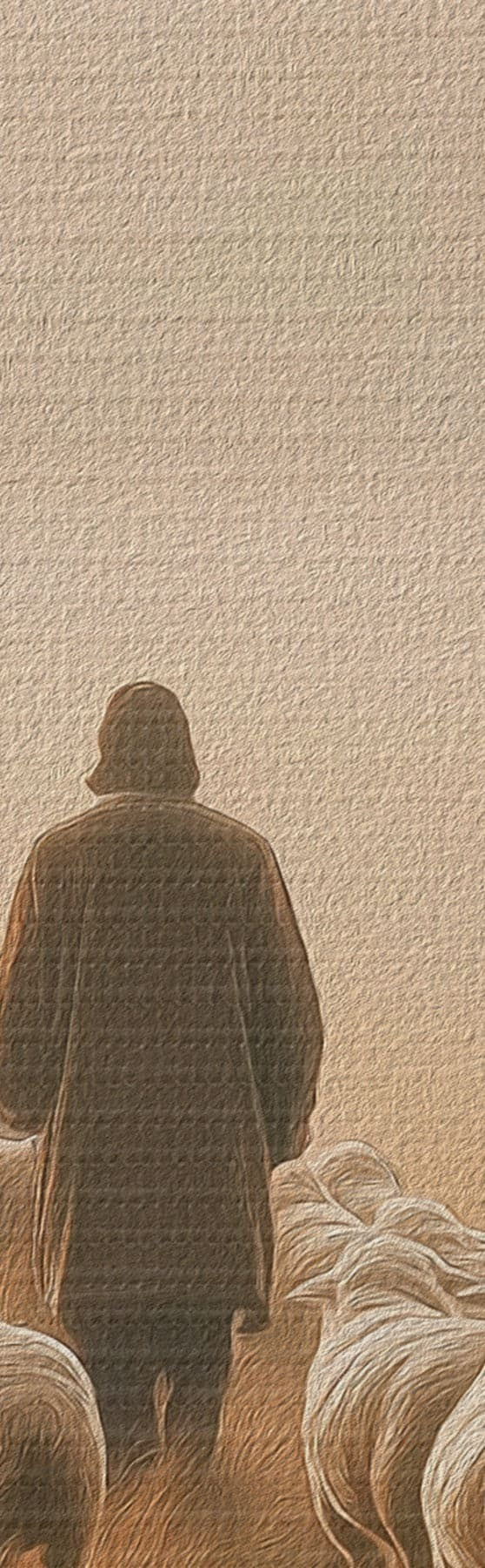 Tableau berger marchant avec son troupeau de moutons dans un champ Nr s48077