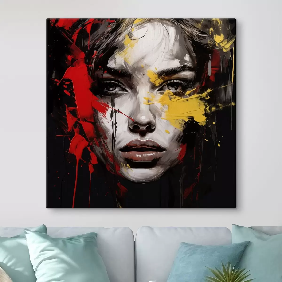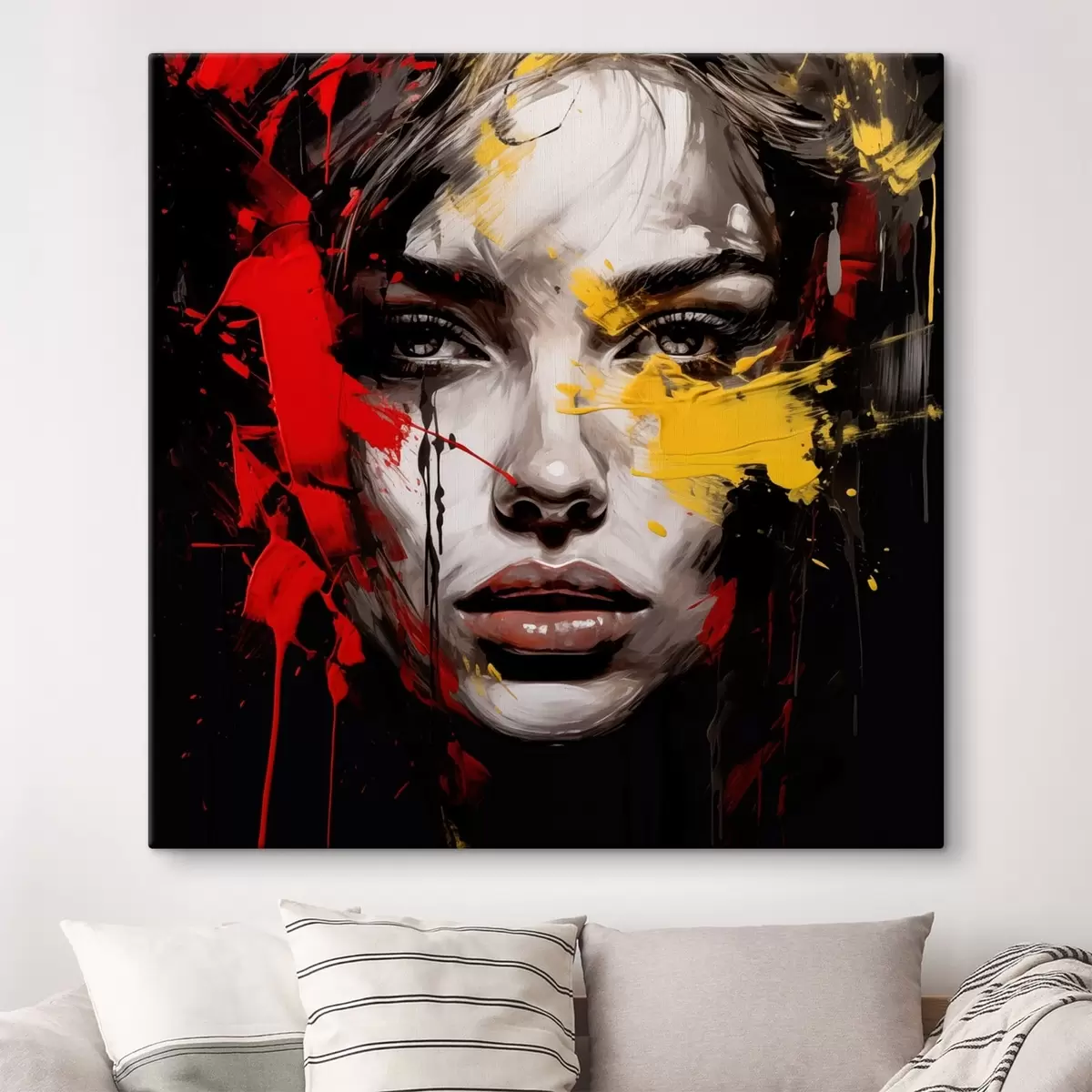 Tableau Portrait de femme avec des traits rouges et jaunes Nr s48089