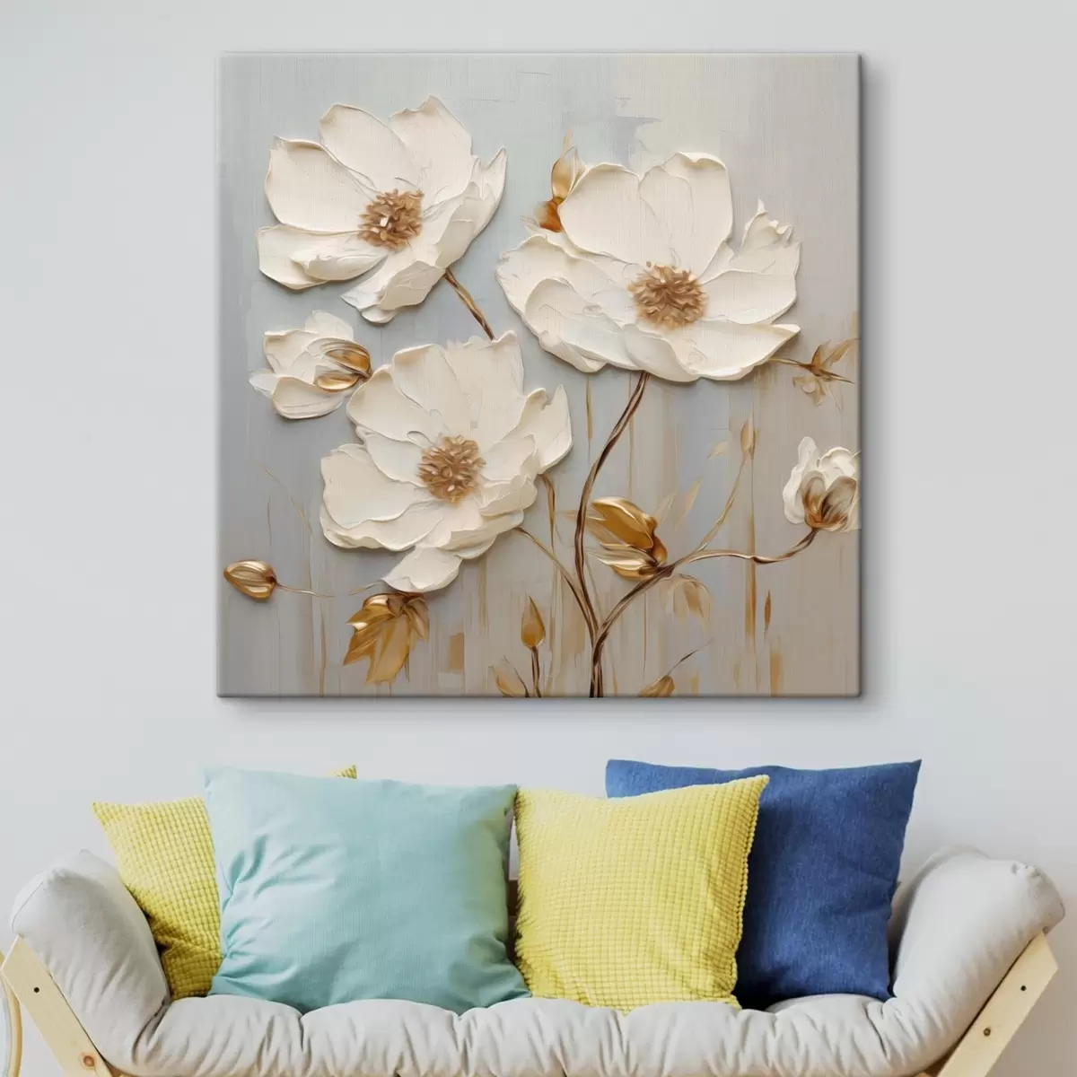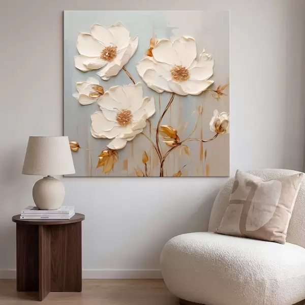 Tableau Fleurs blanches en relief avec des feuilles chaudes Nr s48093