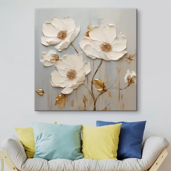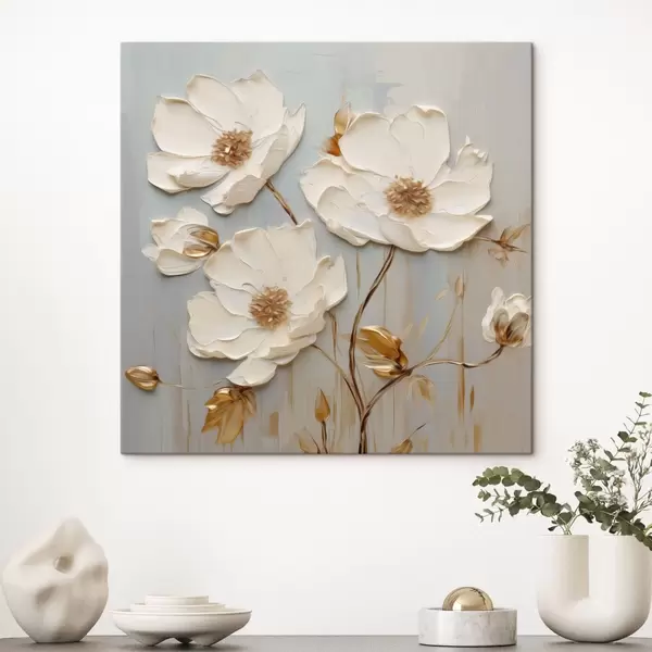 Tableau Fleurs blanches en relief avec des feuilles chaudes s48093
