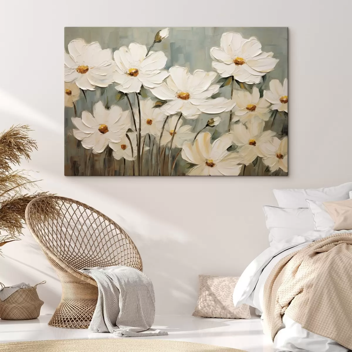 Tableau Fleurs blanches sur fond texturé, coups de pinceau s48094