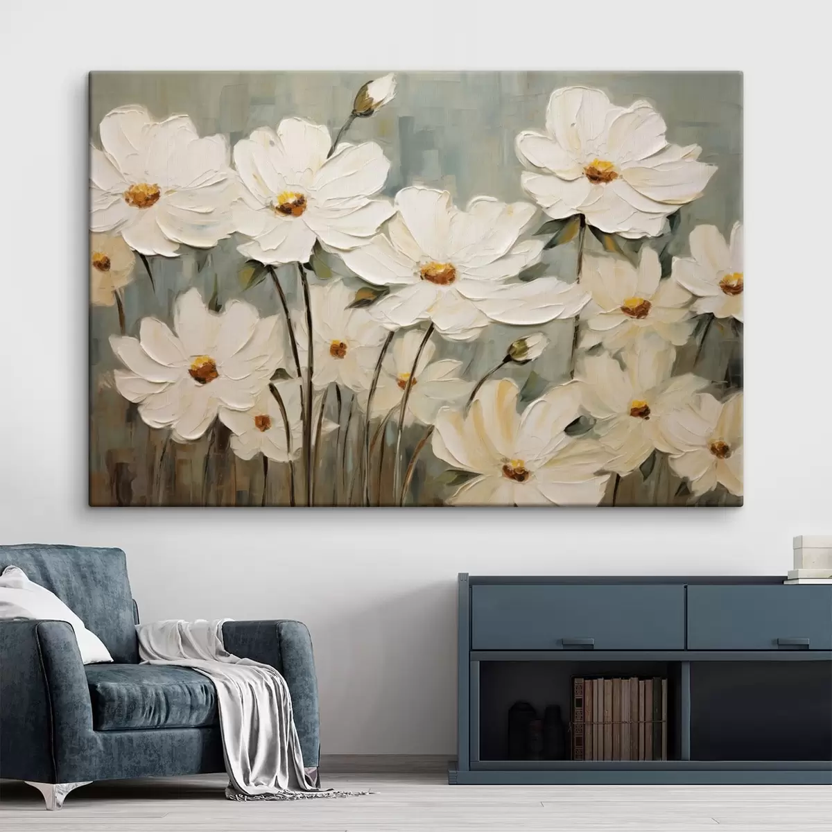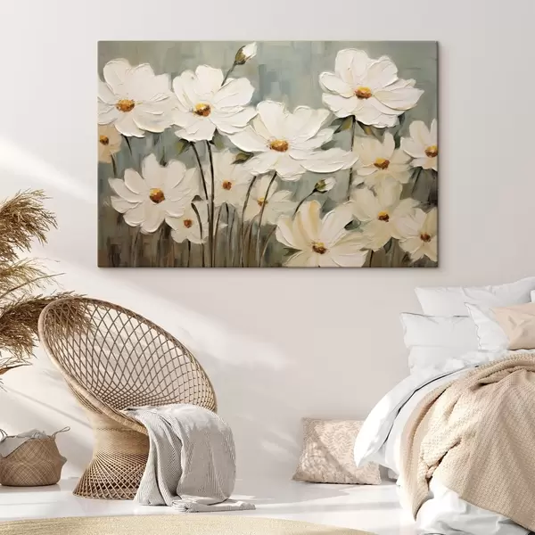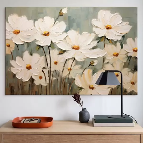 Tableau Fleurs blanches sur fond texturé, coups de pinceau Nr s48094