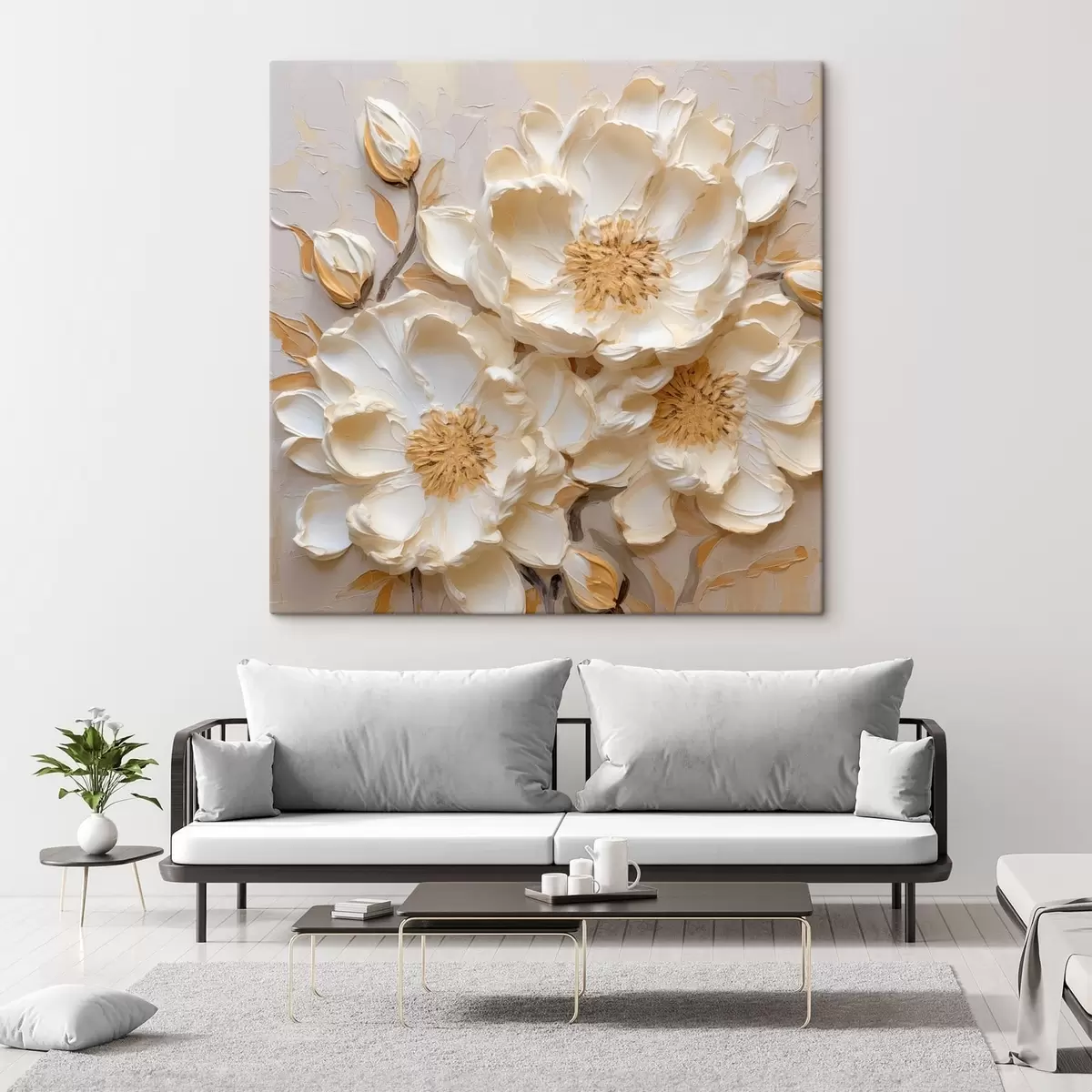 Trois types de matériaux peuvent être commandés : Economic Canvas - matériau dense et durable pour l'impression numérique, identique à la toile de peintre, surface imperméable, reproduction réaliste des détails, matériau à grain moyen. Premium Canvas - la texture ressemble à celle d'une toile de peintre (petits fils entrelacés). Reproduction douce et détaillée de l'image sur une surface mate. Eco-Premium - tissu 100 % coton de haute qualité. Grâce aux fibres naturelles de coton, le matériau est durable et résistant à l'usure. Excellente reproduction des couleurs et des détails.