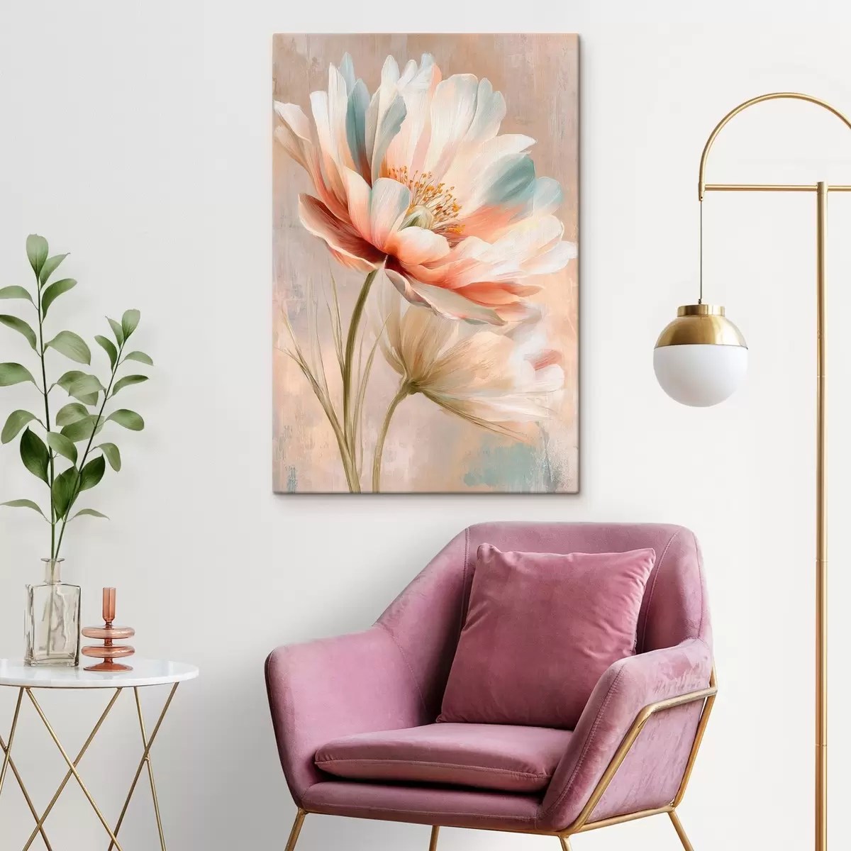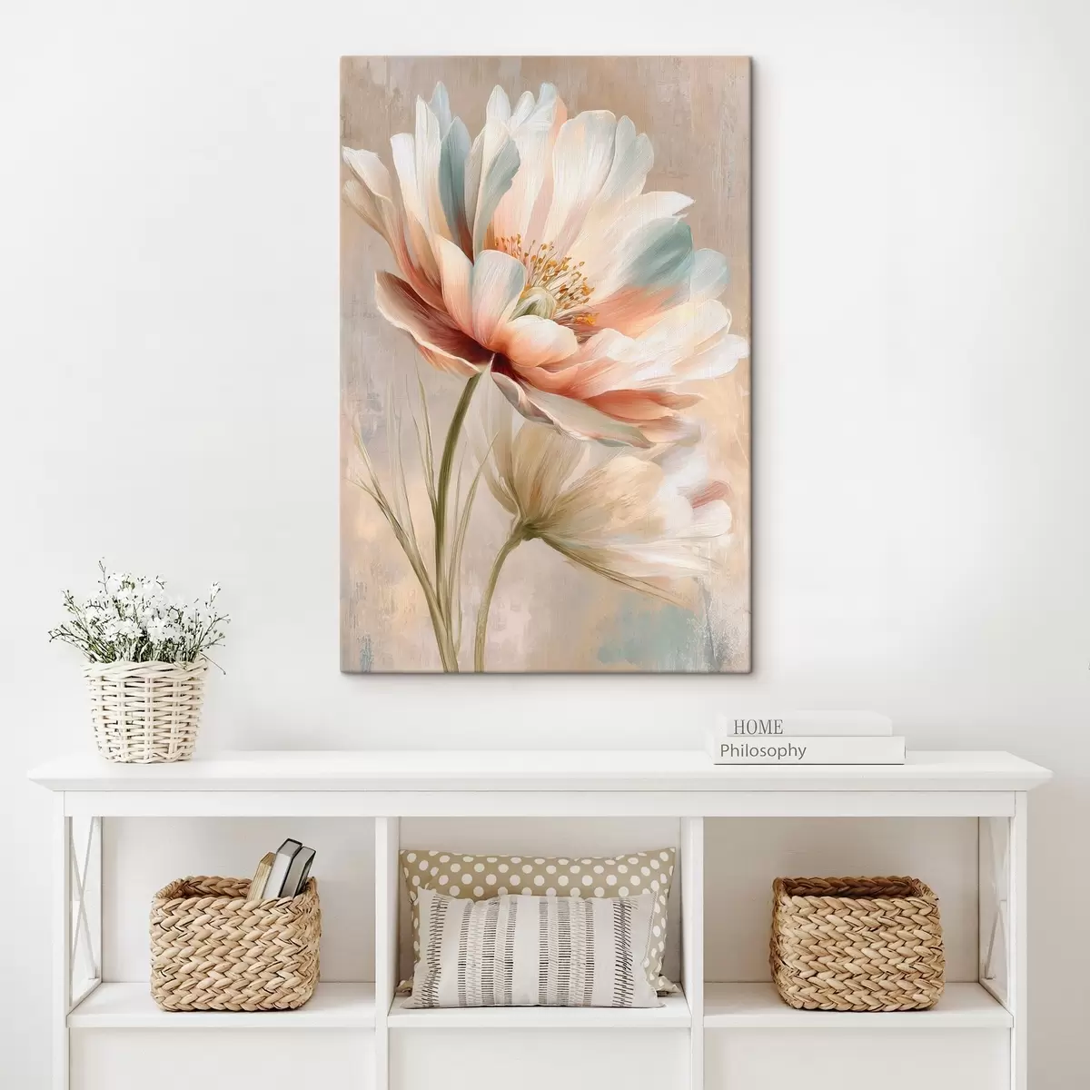 Tableau De délicates pivoines dans une palette de beiges et de corail, dans un style de peinture à l'huile s48184