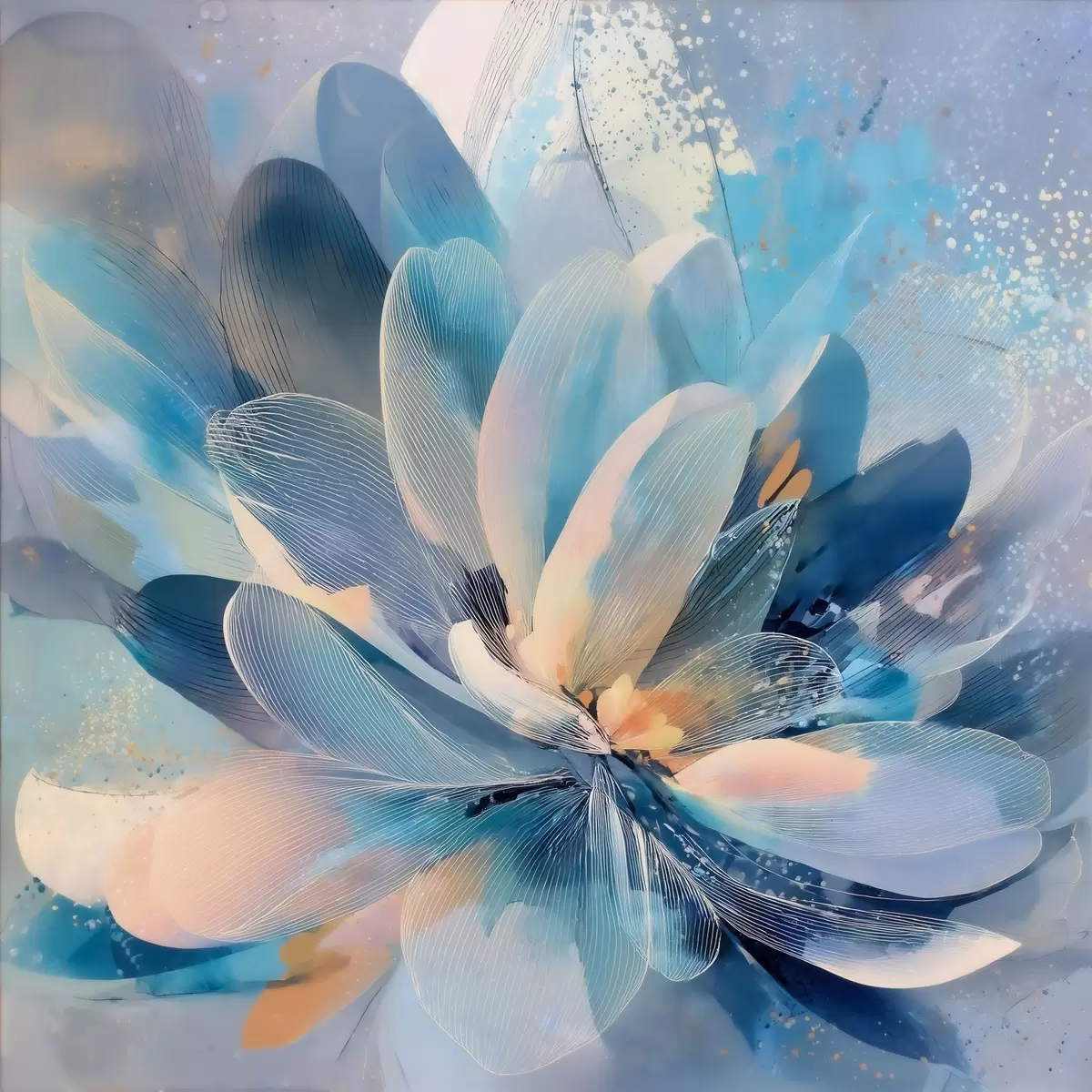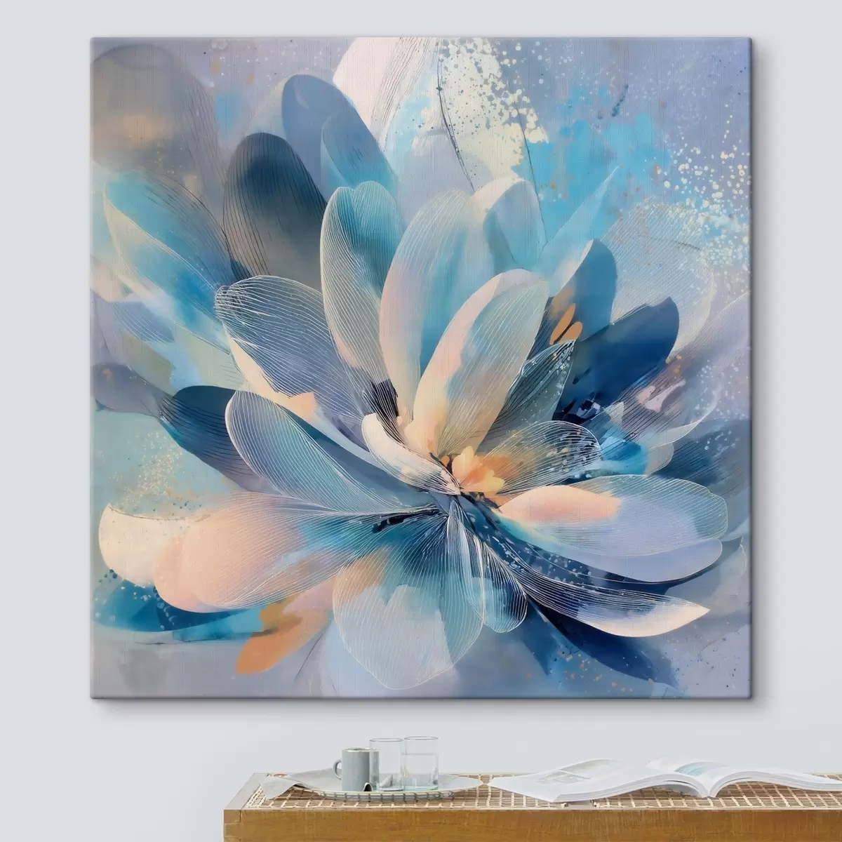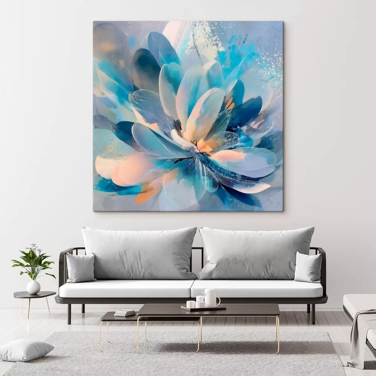 Tableau Fleur abstraite dans des tons froids, dans le style d'une affiche d'art s48186
