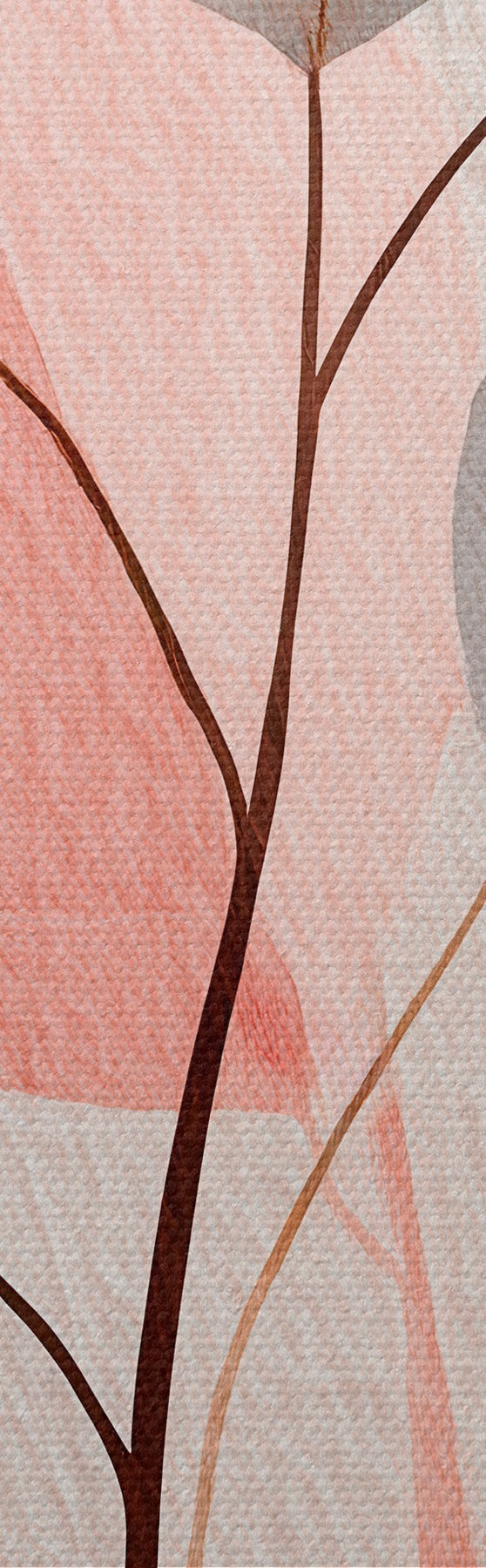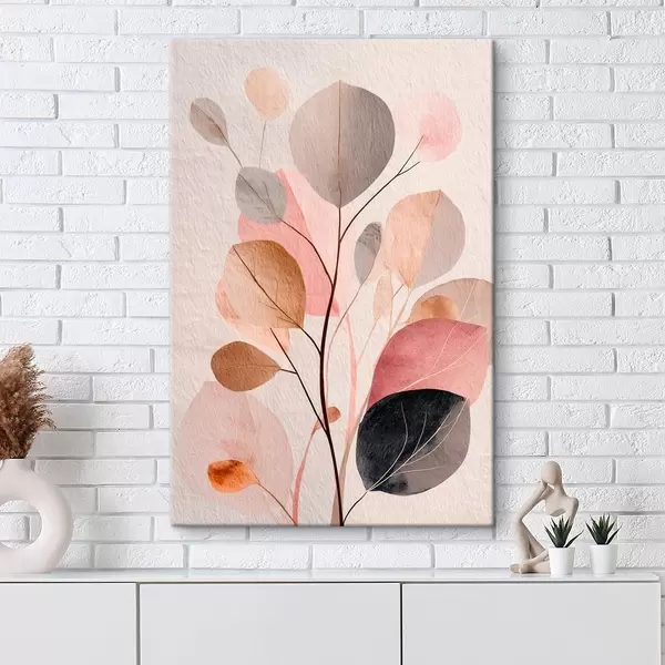 Tableau Branche abstraite aux feuilles arrondies, dans des tons chauds de beige et de corail Nr s48187