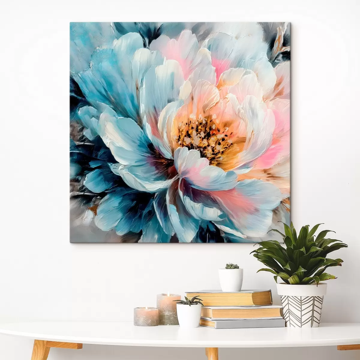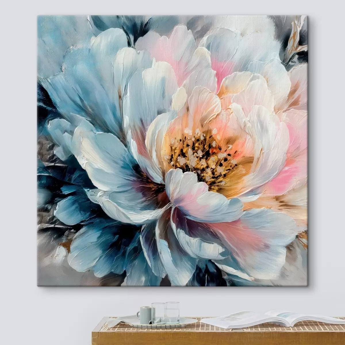 Tableau Grande pivoine représentée par des coups de pinceau texturés et expressifs, dans un style pictural contemporain Nr s48197