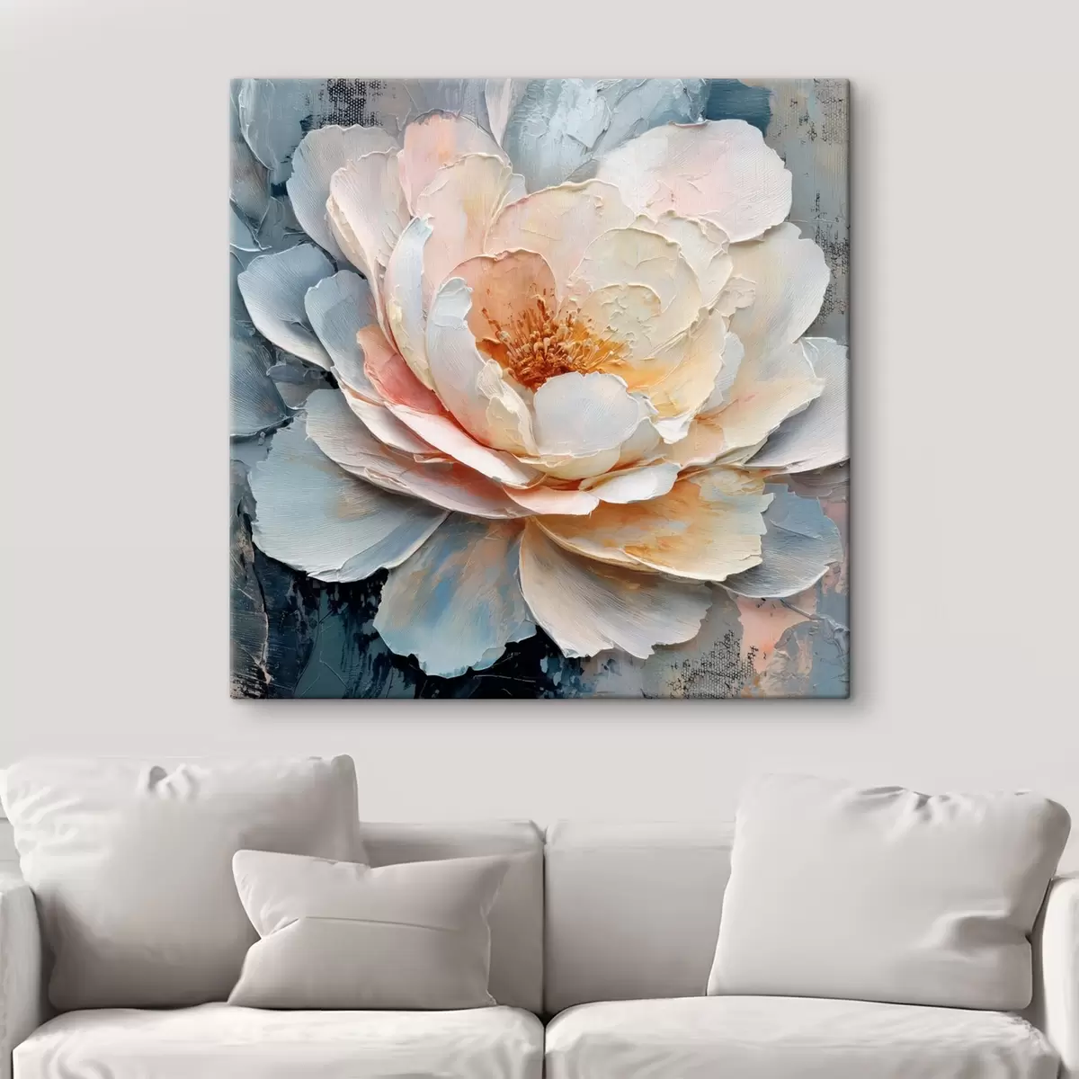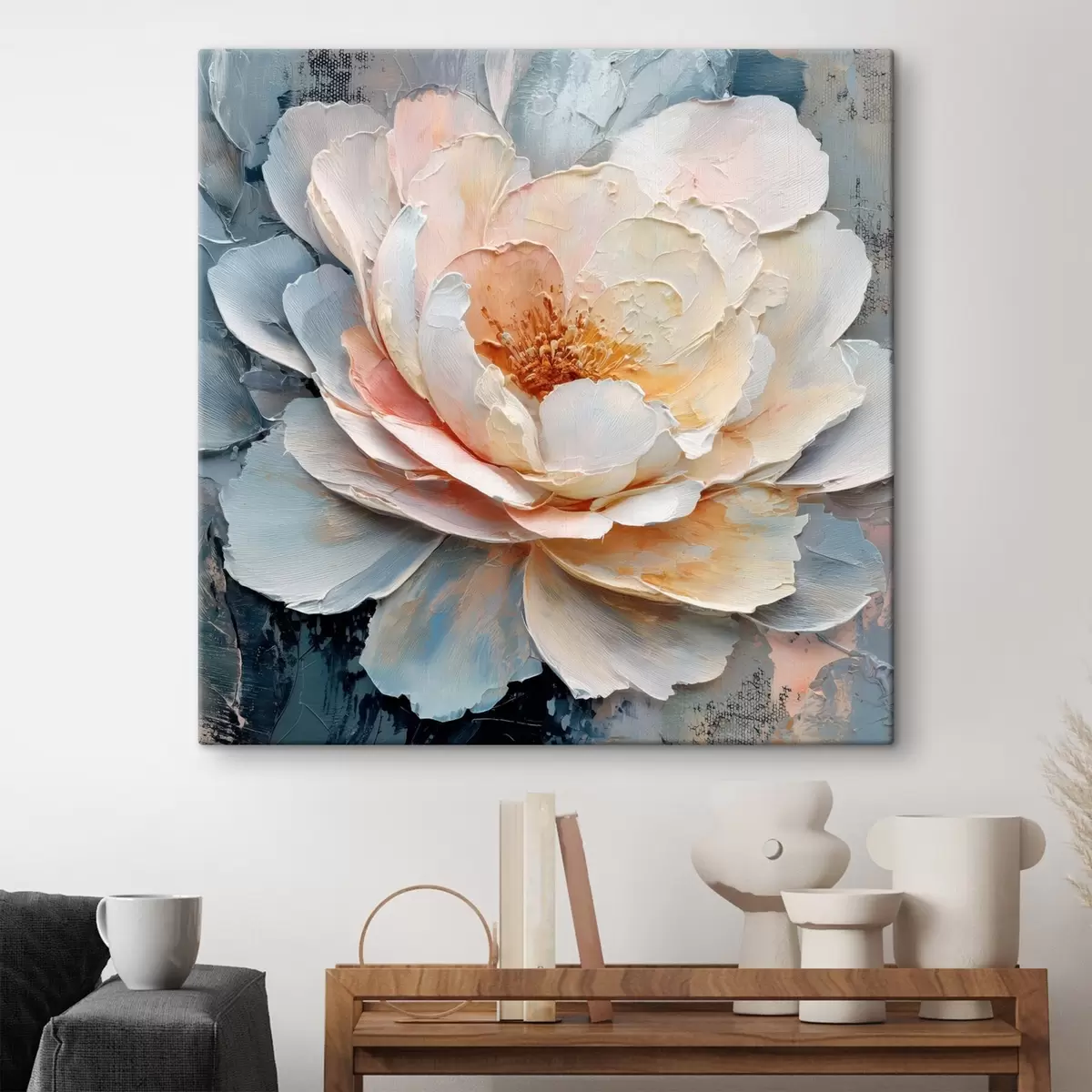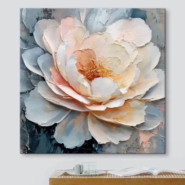 Tableau Gros plan sur une fleur, réalisé avec des coups de pinceau texturés et expressifs, dans un style pictural contemporain s48198