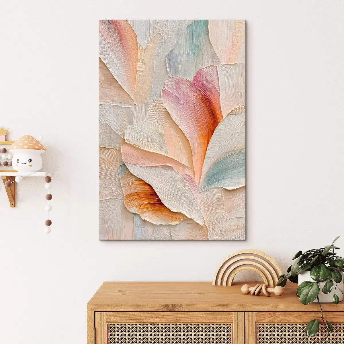 Tableau Illustration artistique avec des pétales en relief, dans un style pictural contemporain s48201