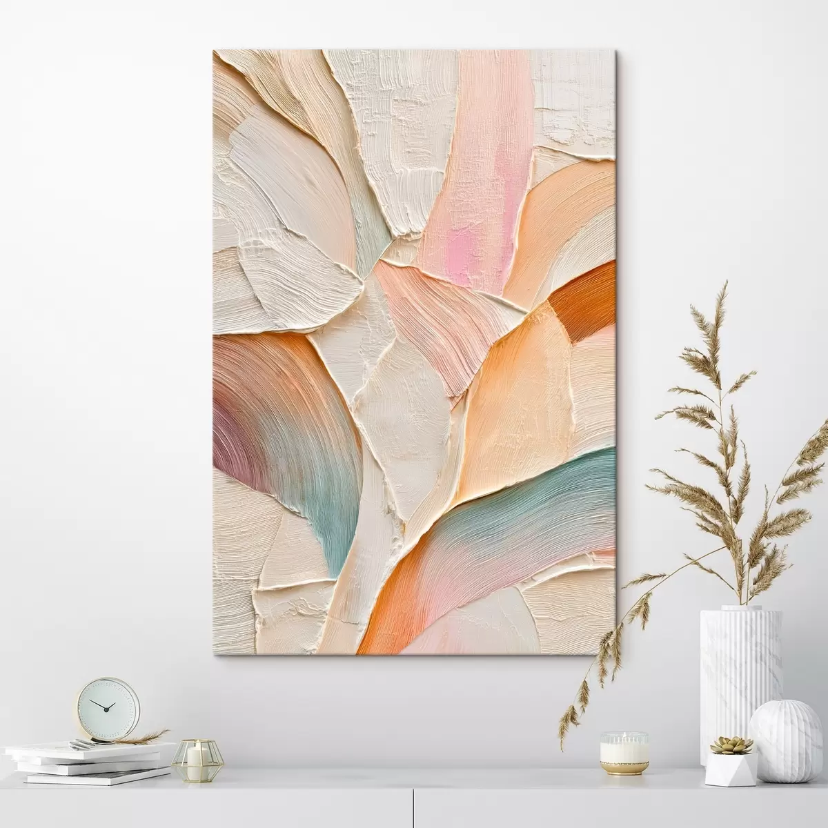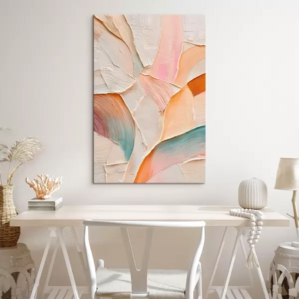 Tableau Fond abstrait avec des coups de pinceau dynamiques dans des tons pêche et bleu s48202