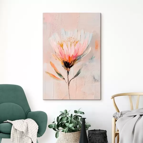 Tableau Fleur de protéa dans des tons rose pâle, dans un style peinture à l'huile s48205