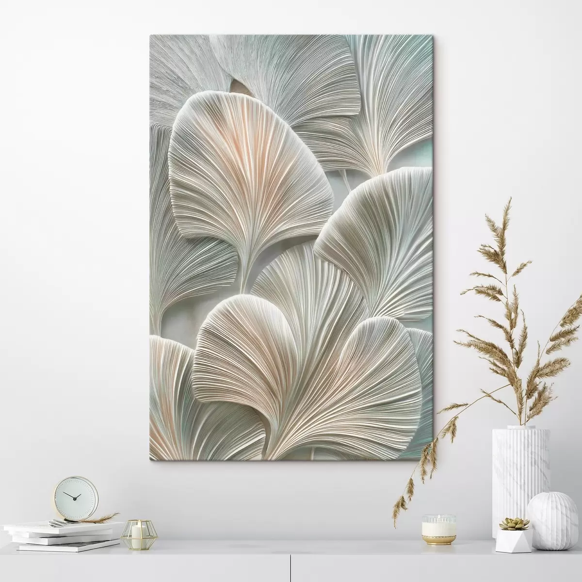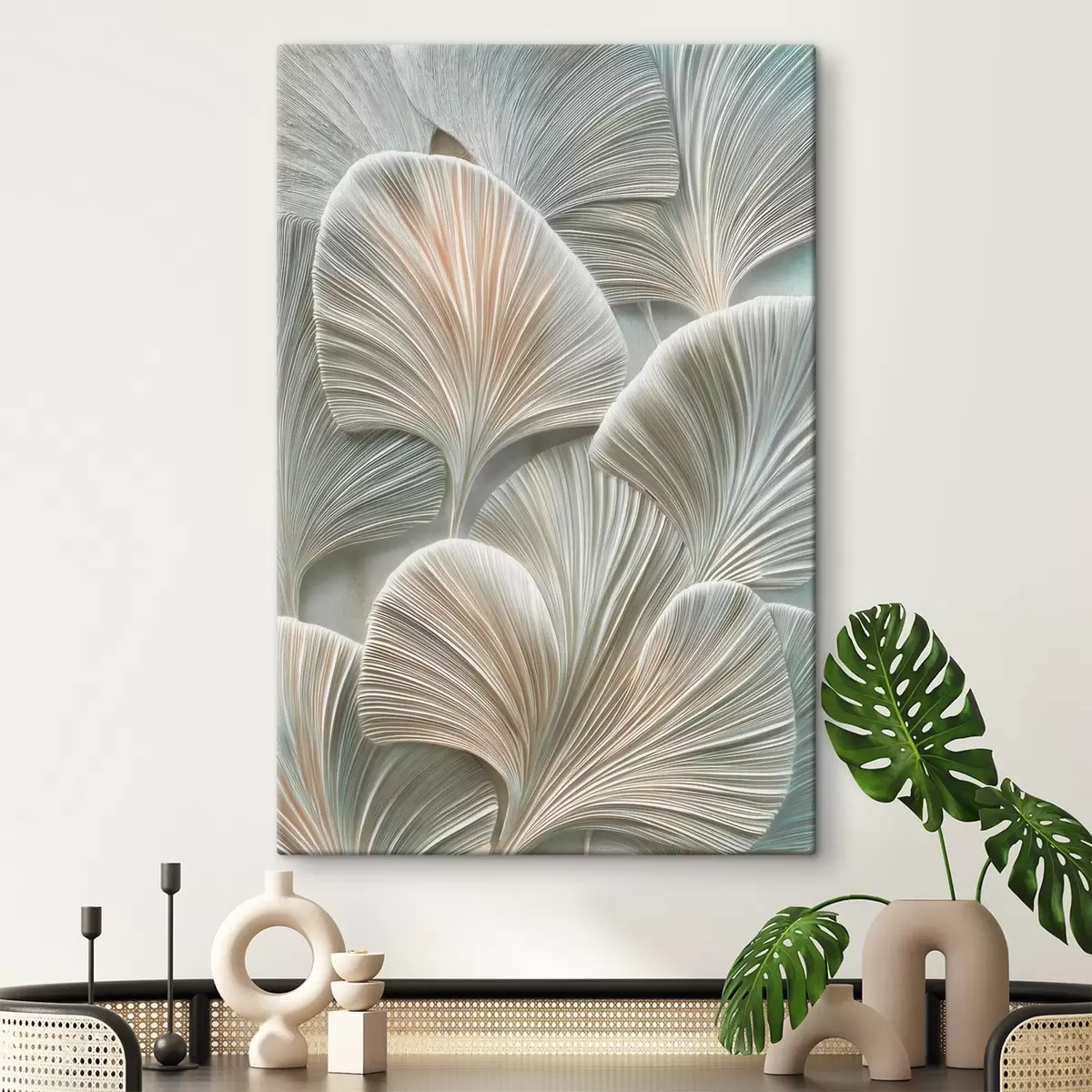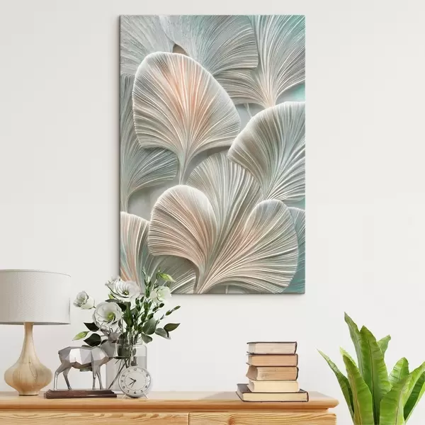 Tableau Illustration artistique représentant des feuilles en relief, dans un style contemporain de bas-relief Nr s48210