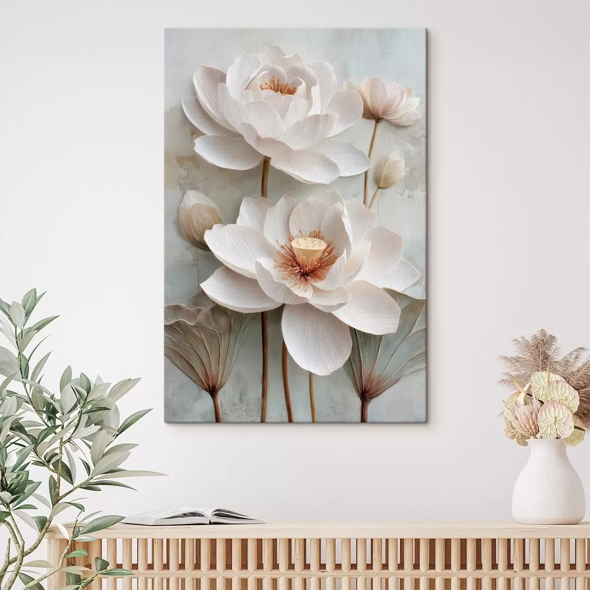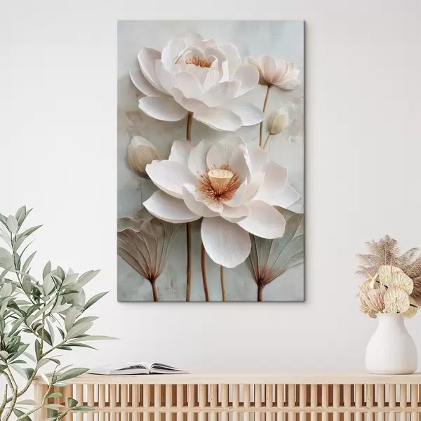 Tableau Des fleurs de lotus aux teintes pastel claires, dans un style de peinture à l'huile s48213