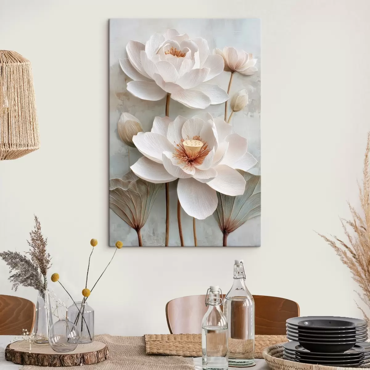 Tableau Des fleurs de lotus aux teintes pastel claires, dans un style de peinture à l'huile Nr s48213