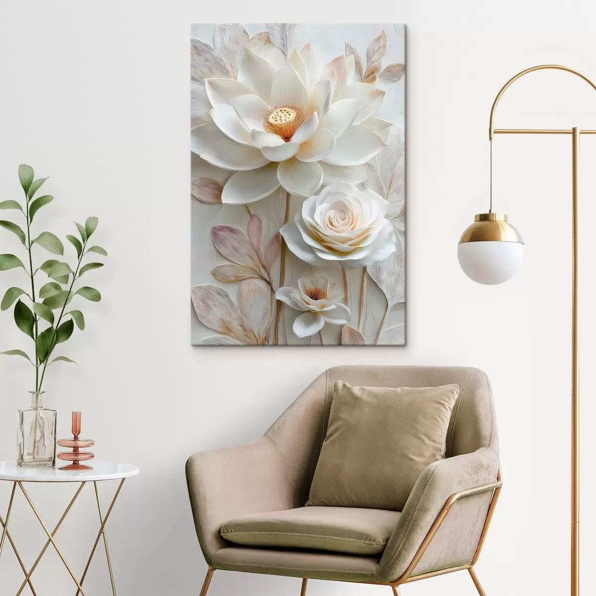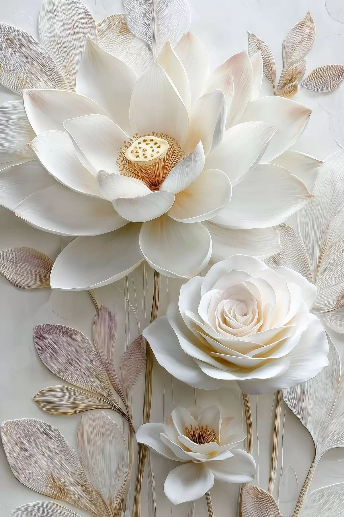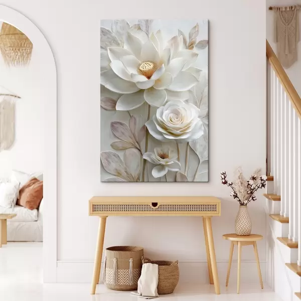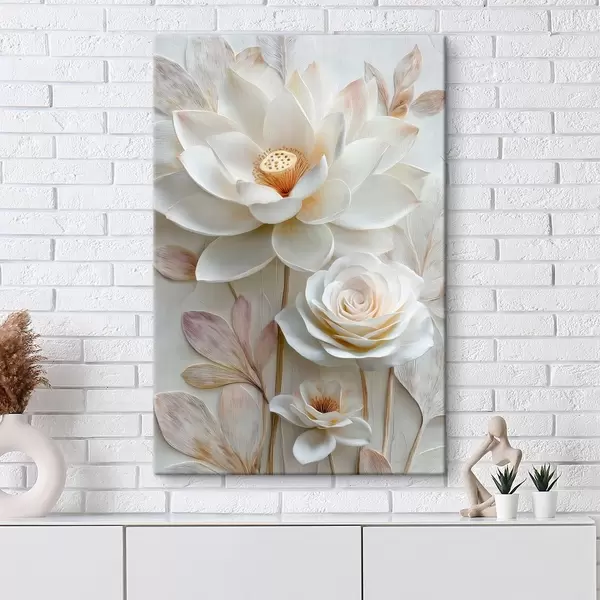 Tableau Des fleurs de lotus et de rose dans des tons crème clair, dans un style de peinture à l'huile s48214