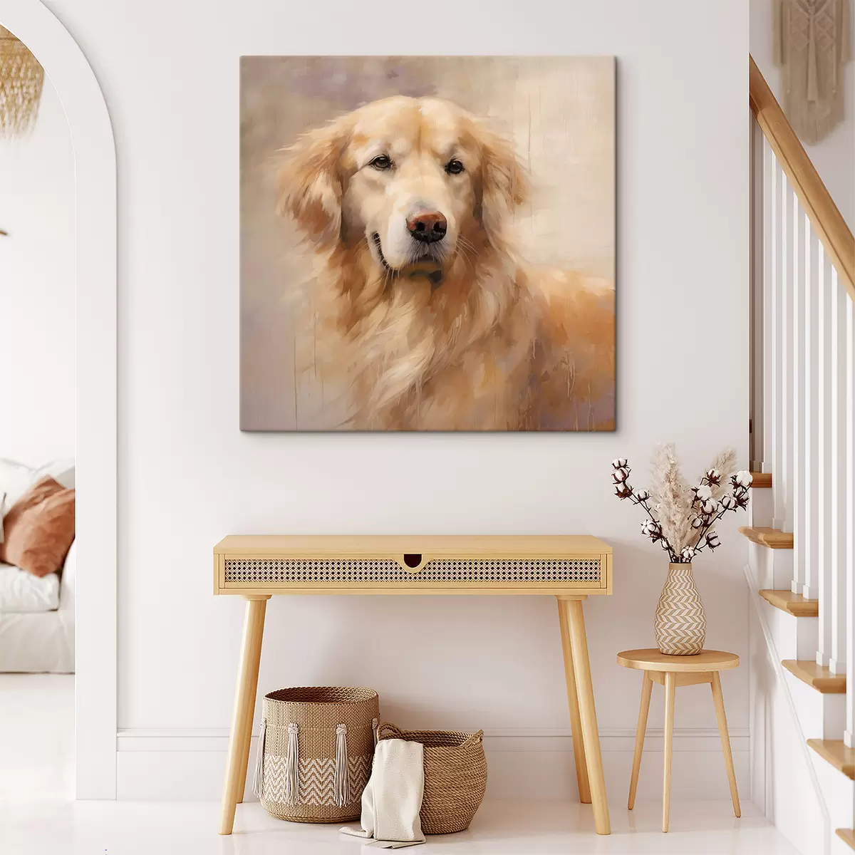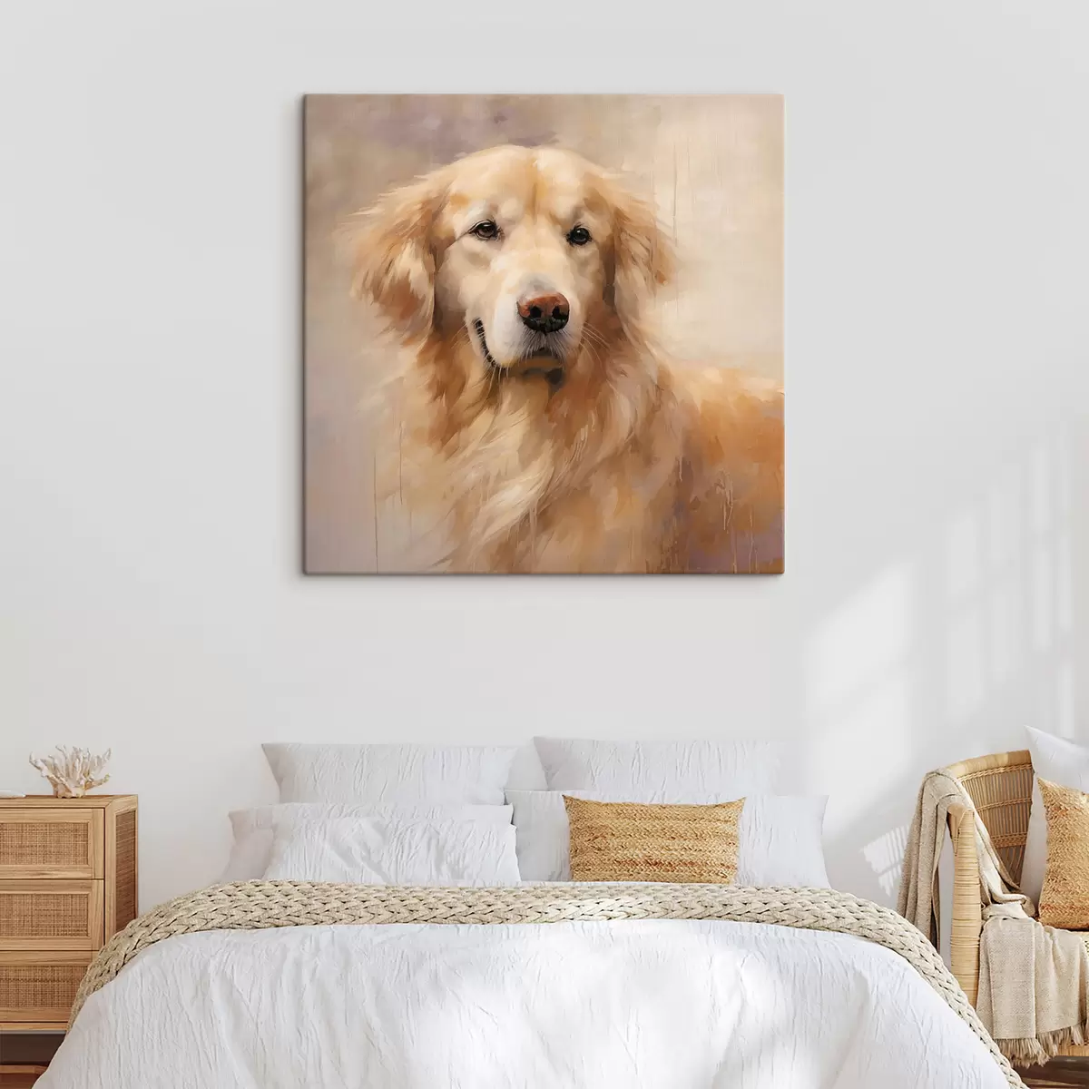 Trois types de matériaux peuvent être commandés : Economic Canvas - matériau dense et durable pour l'impression numérique, identique à la toile de peintre, surface imperméable, reproduction réaliste des détails, matériau à grain moyen. Premium Canvas - la texture ressemble à celle d'une toile de peintre (petits fils entrelacés). Reproduction douce et détaillée de l'image sur une surface mate. Eco-Premium - tissu 100 % coton de haute qualité. Grâce aux fibres naturelles de coton, le matériau est durable et résistant à l'usure. Excellente reproduction des couleurs et des détails.