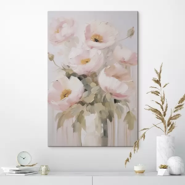 Tableau Fleurs abstraites dans un vase imitation peinture s48264