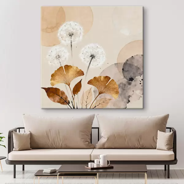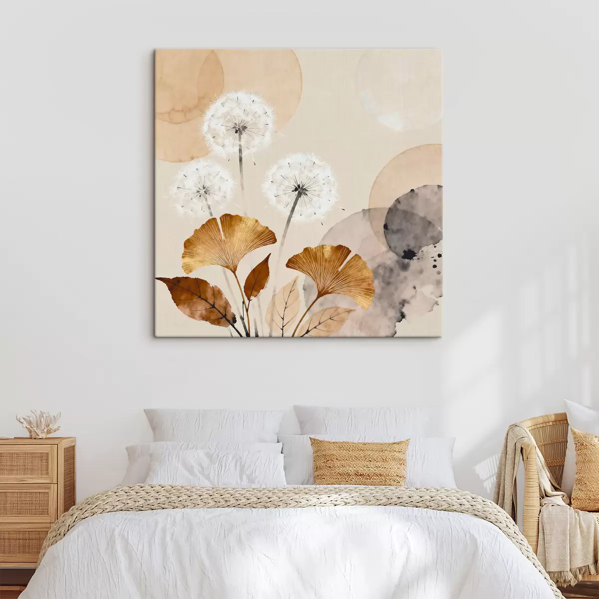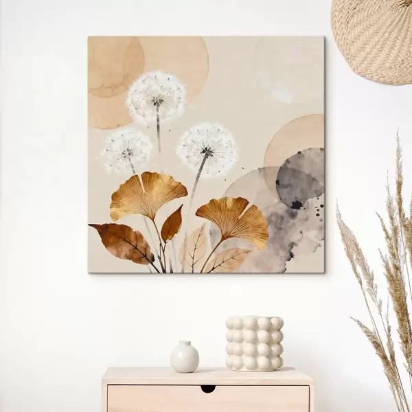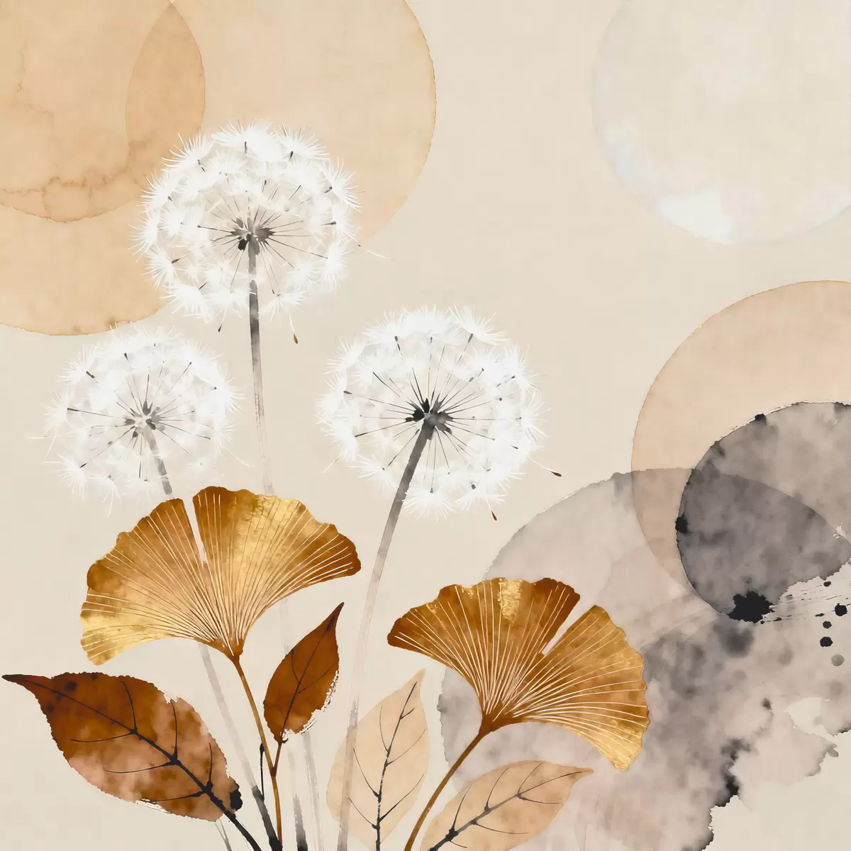 Tableau Désignation : pissenlits et feuilles de ginkgo s48279