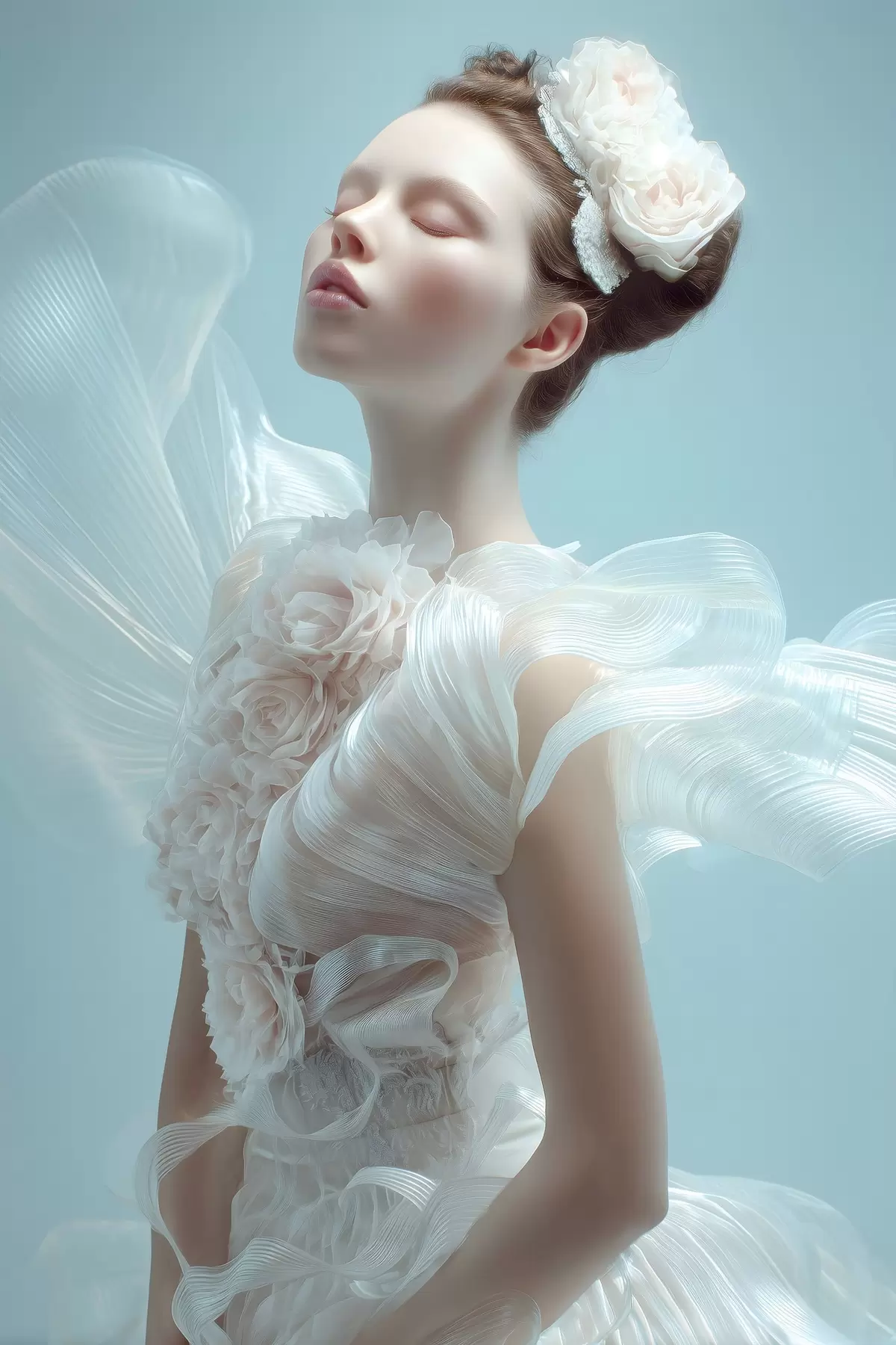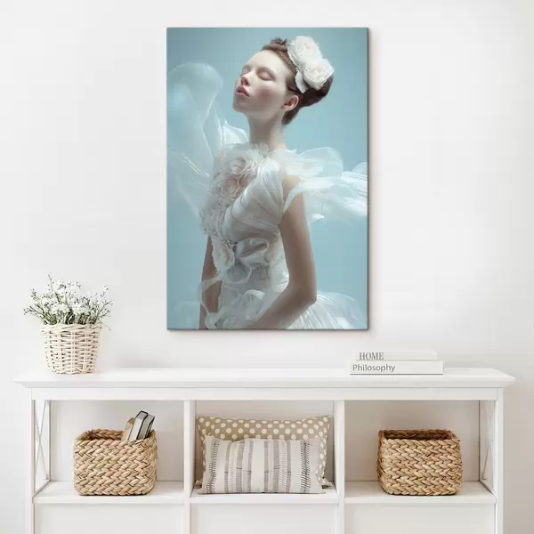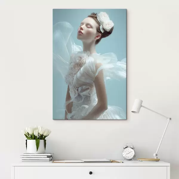 Tableau une jeune fille délicate vêtue d'une robe blanche s48287