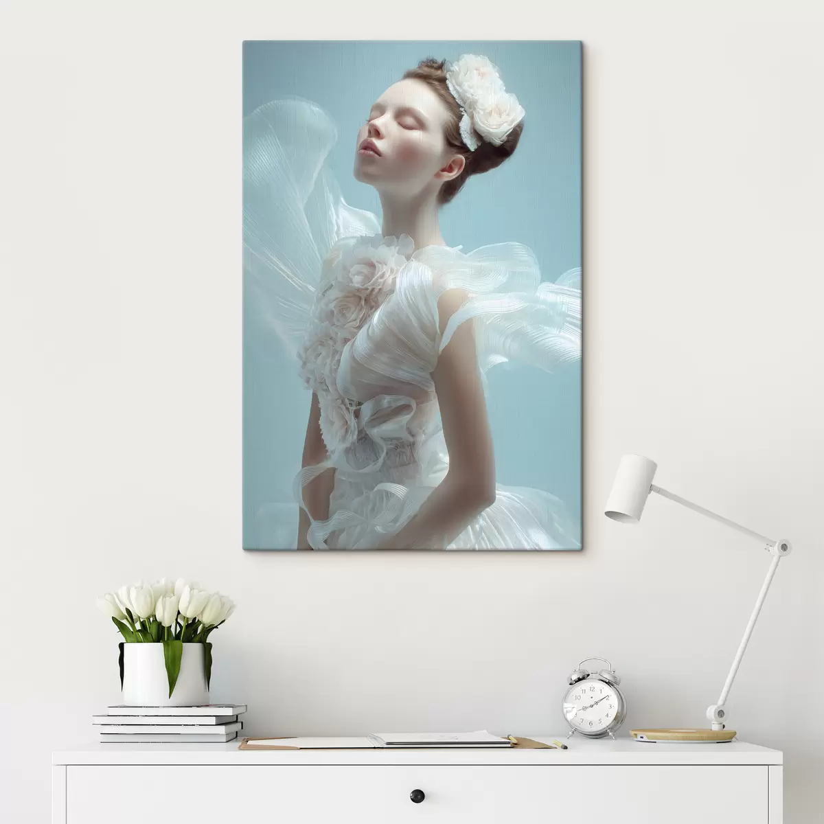 Tableau une jeune fille délicate vêtue d'une robe blanche Nr s48287