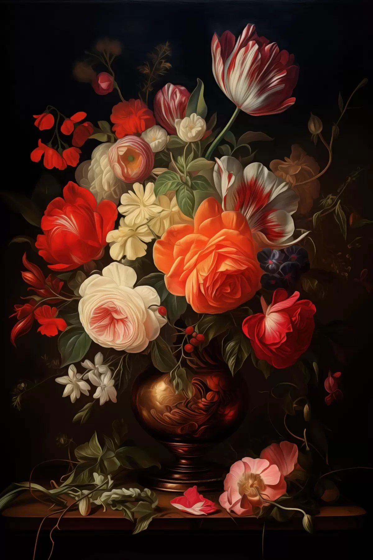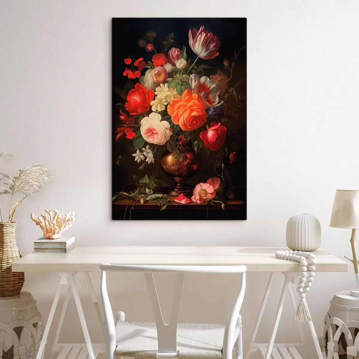 Tableau Bouquet de fleurs dans un vase sur fond sombre Nr s48351