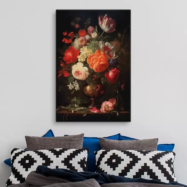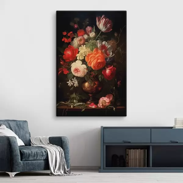 Tableau Bouquet de fleurs dans un vase sur fond sombre s48351