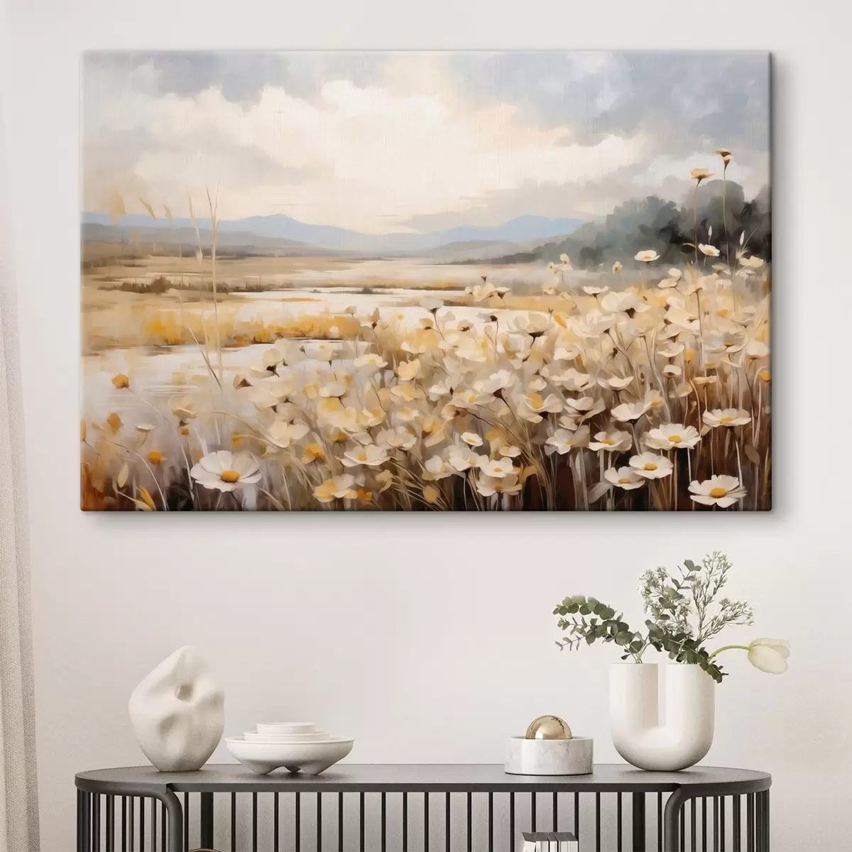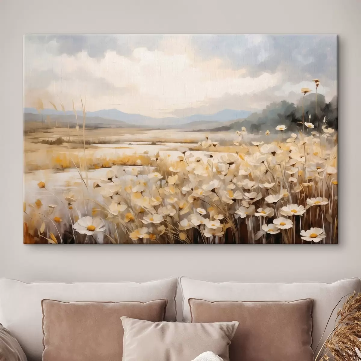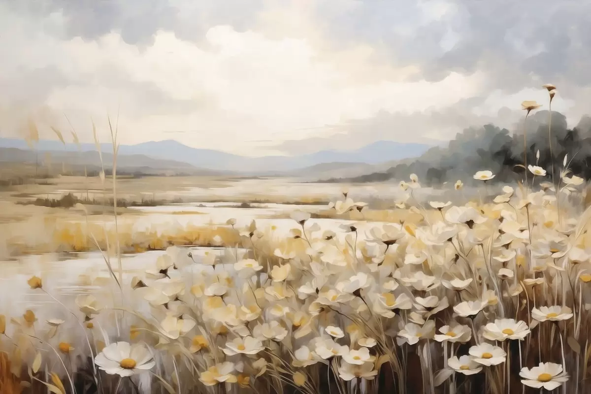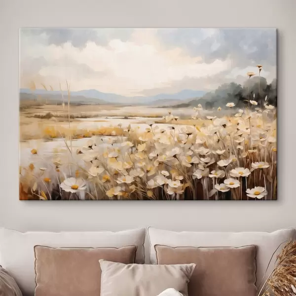 Tableau Fleurs des champs au bord de l'eau, dans un style pictural tout en douceur s48354
